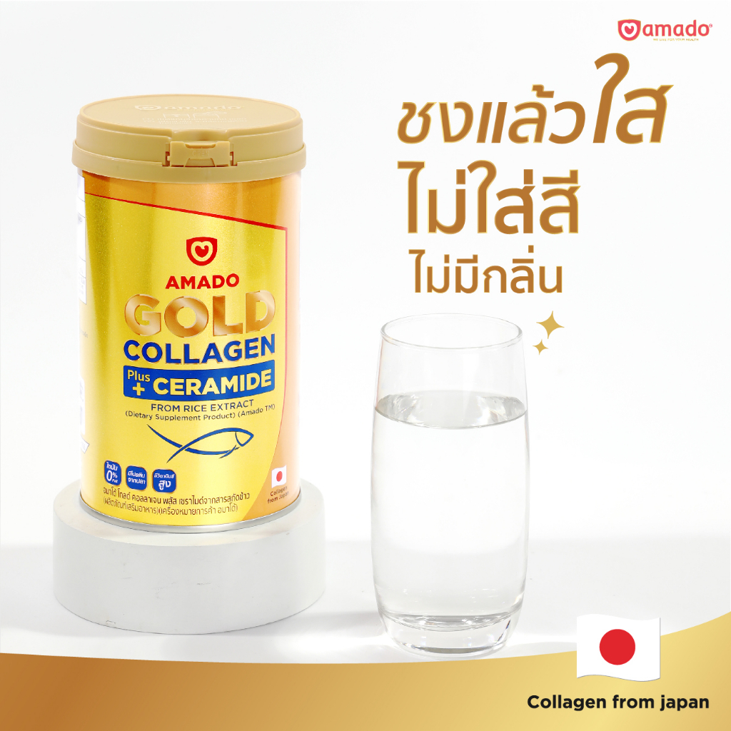 Amado Gold Collagen อมาโด้ โกลด์ คอลลาเจน เซราไมด์ [300 กรัม/ถุง] [1 ถุง] ดูแลผิว ข้อ กร ะดูก Amado Collagen