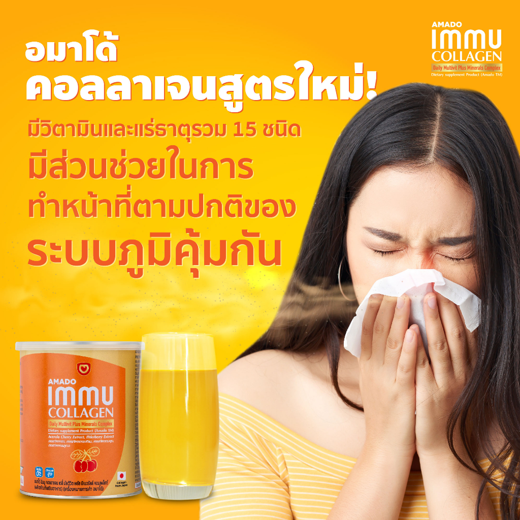 Amado Immu Collagen อมาโด้ อิมมู คอลลาเจน [100 กรัม] [1 กระปุก] Amado Collagen ของแท้ คอลลาเจนดูแลผิว กระดูก และข้อ