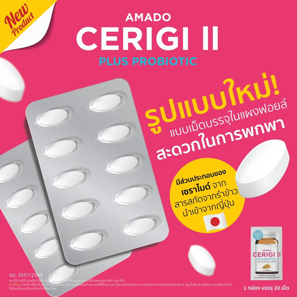 Amado Cerigi II Plus Probiotic อมาโด เซริจิ ทู พลัส [20 เม็ด/กระปุก]
