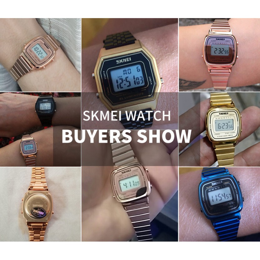 【ซื้อ 1 แถม 1】สุขสันต์วันสงกรานต์ SKMEI นาฬิกากันน้ำ นาฬิกา นาฬิกาข้อมือผู้หญิง แบบกันน้ำ นาฬิกาข้อมือดิจิทัล LED สายสเตนเลส(Updated version)นาฬิกาข้อมือผู้หญิง