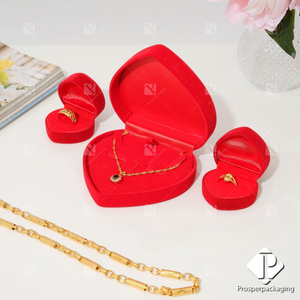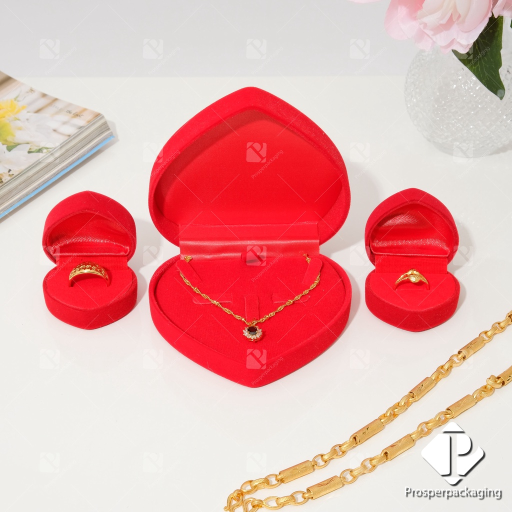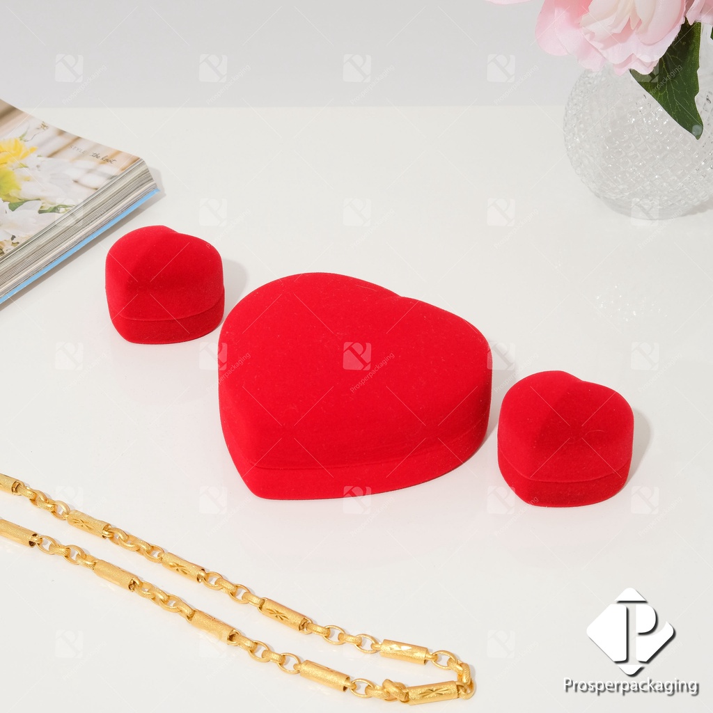 กล่องกำ มะหยี่ กล่องใส่เครื่องประดับรวมชุด หัวใจ ใส่แหวน 2 ใบ และ หัวใจกล่องเซ็ต 1 ใบ จัดเก็บเครื่องประดับ แหวน สร้อย รวม