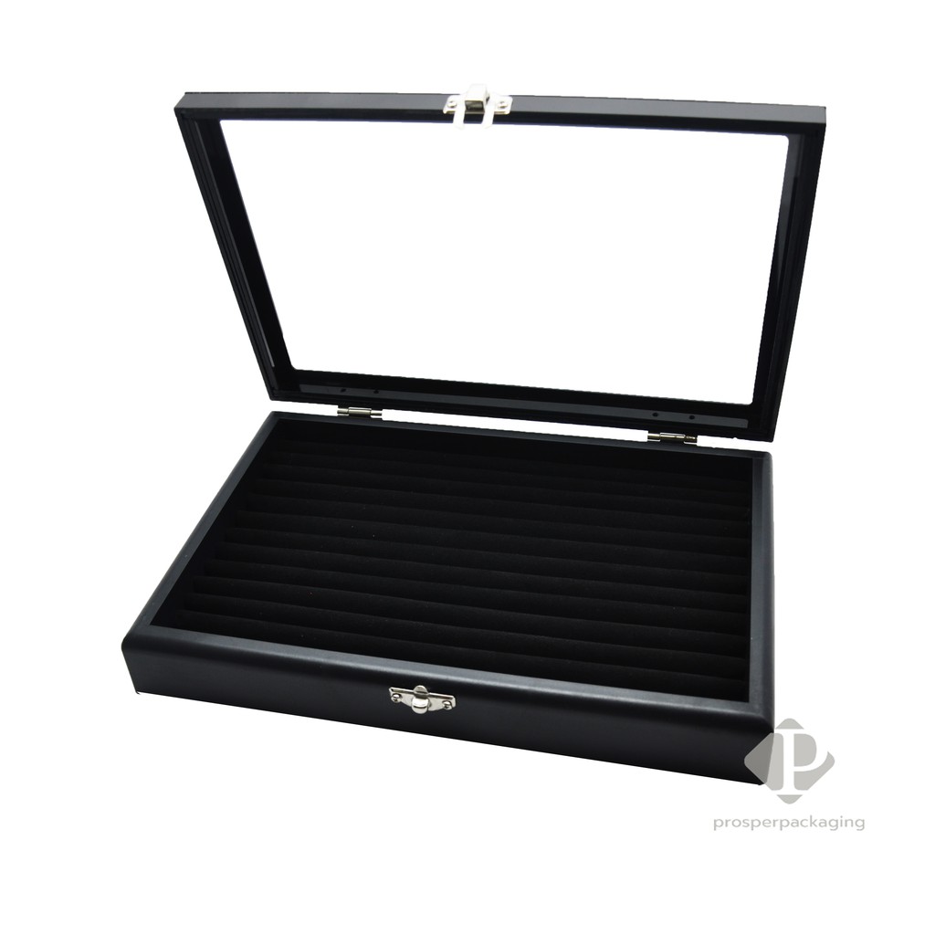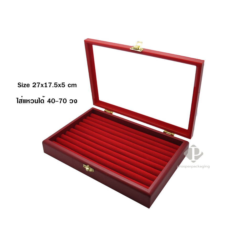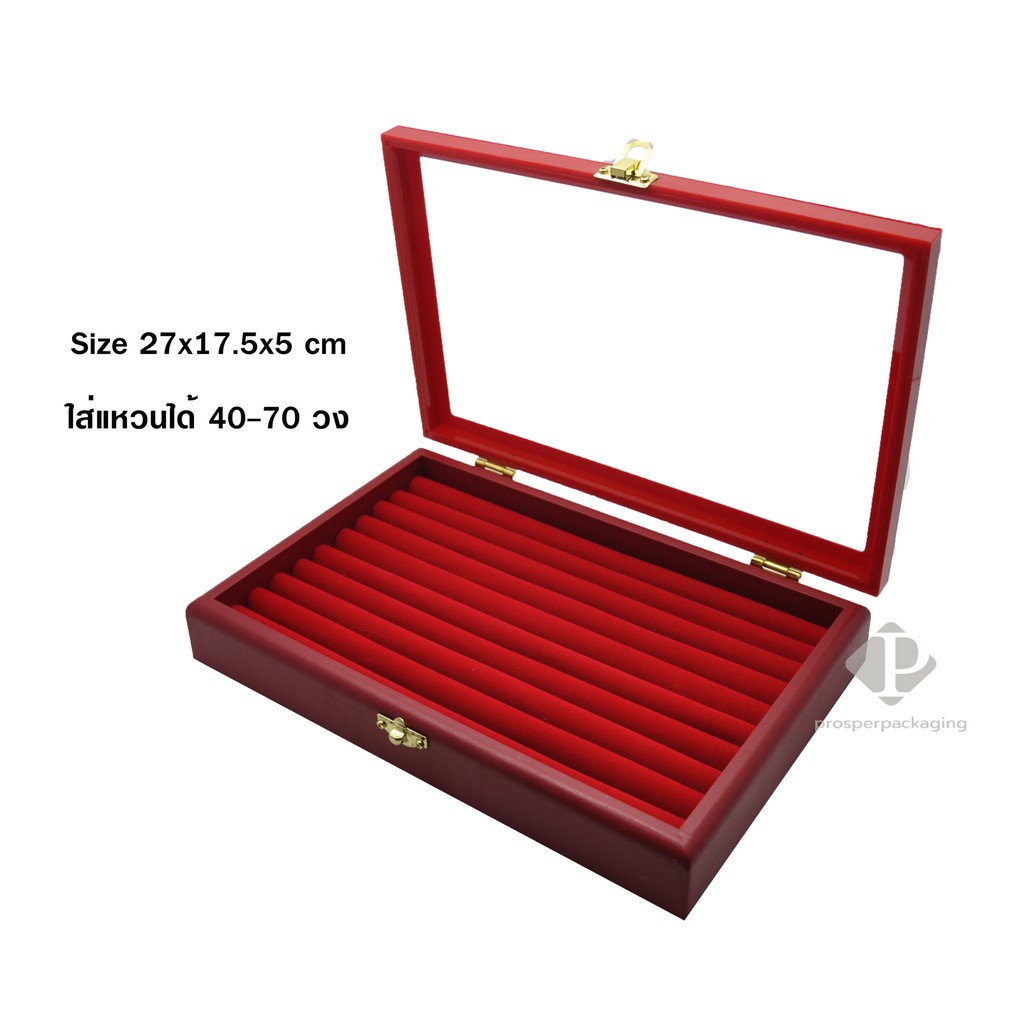 กล่องใส่แหวนฟูก ได้ 40-70 วง ด้านบนมีกระจก ภายในฟูกใส่แหวน (กล่องกระจกใหญ่ ขนาด27x17.5x5cm แบบฟูก)