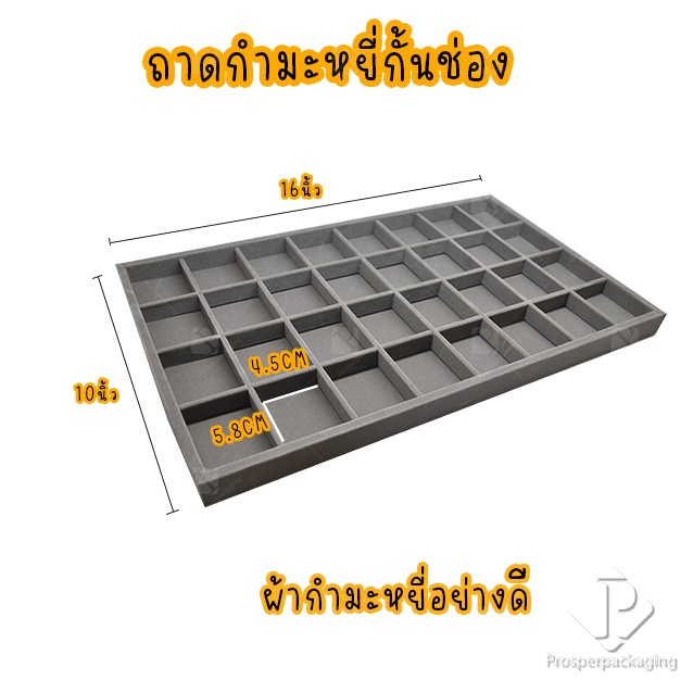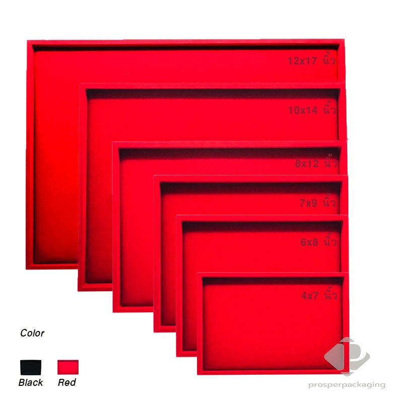 ถาดพระ ถาดโชว์พระ ถาดโชว์เครื่องประดับ มีหลากหลายขนาด ปูเรียบ วัสดุเป็นผ้ากำมะหยี่ มีสีดำ สีแดง และ สีเทา