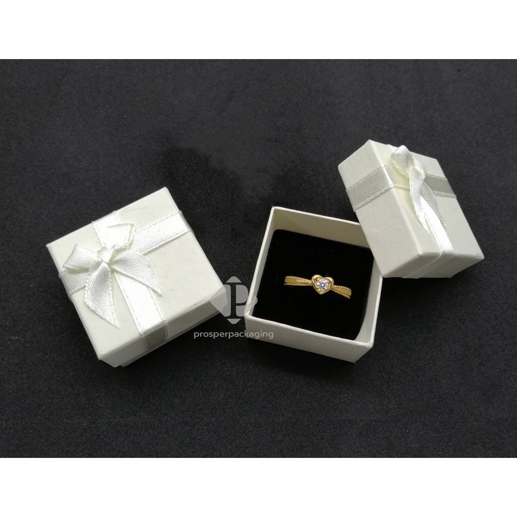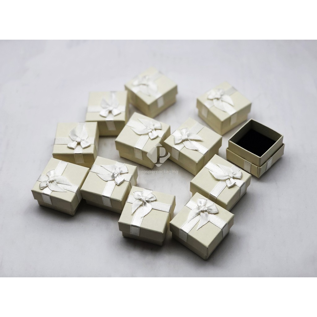กล่องใส่เครื่องประดับ ราคาถูก สินค้าพร้อมส่ง วัสดุเป็นกระดาษ มีโบว์ (สีครีม)