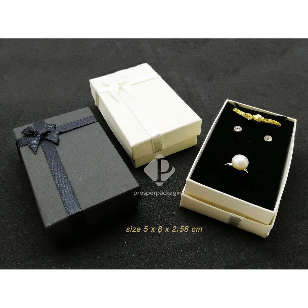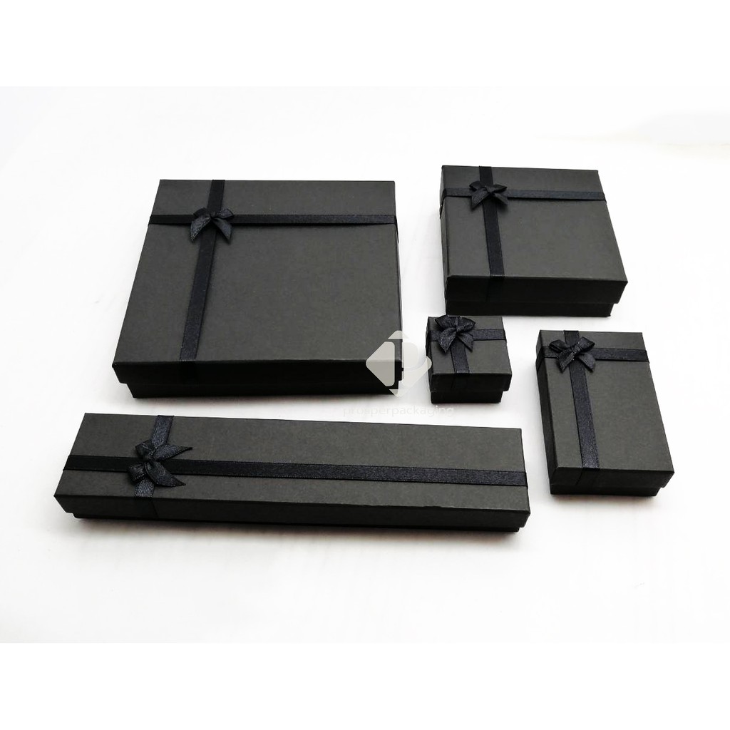 กล่องใส่เครื่องประดับ ราคาถูก สินค้าพร้อมส่ง วัสดุเป็นกระดาษ มีโบว์ (สีดำ)