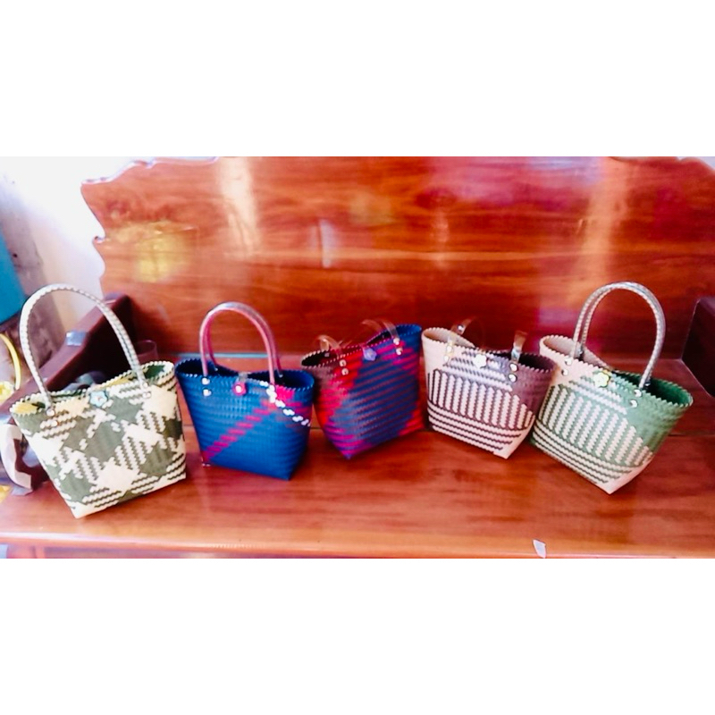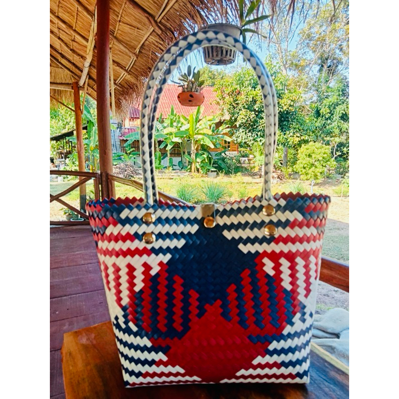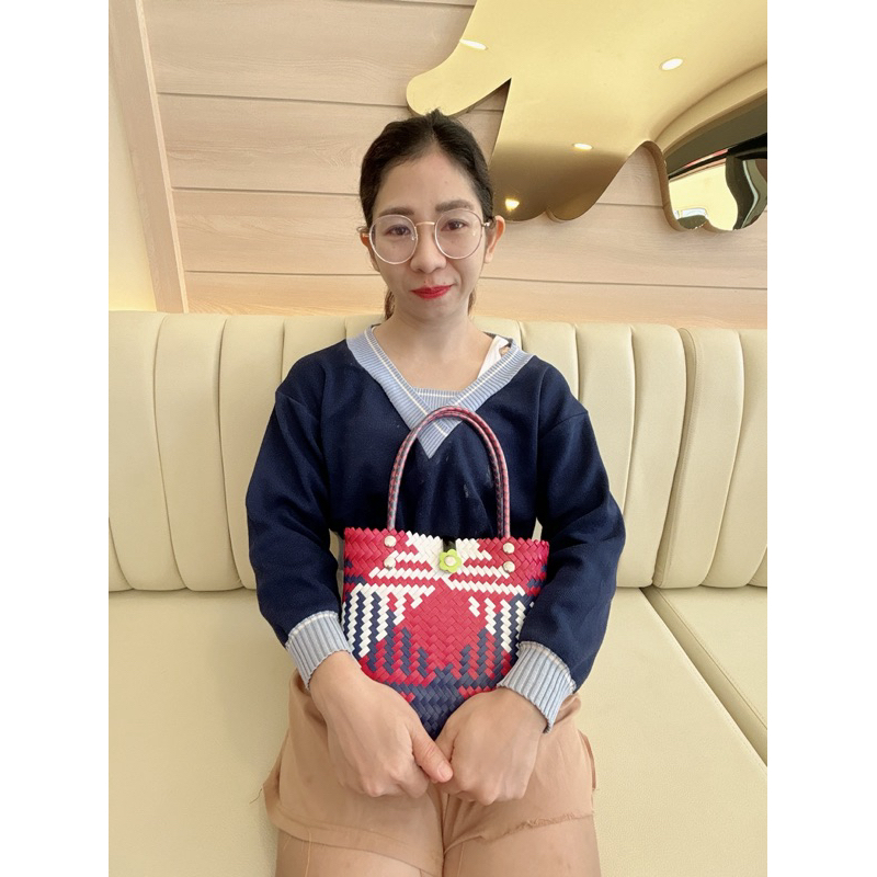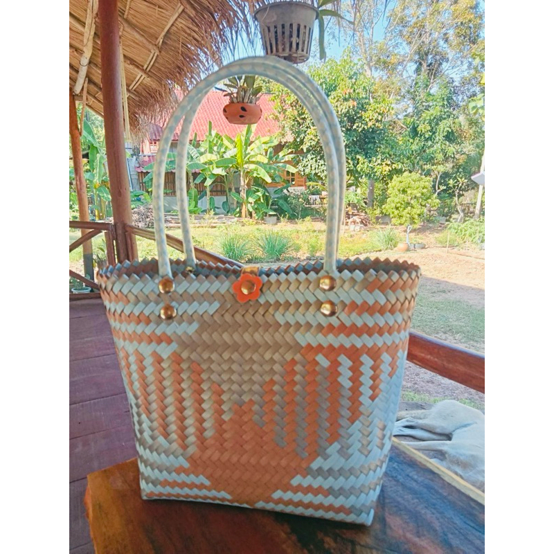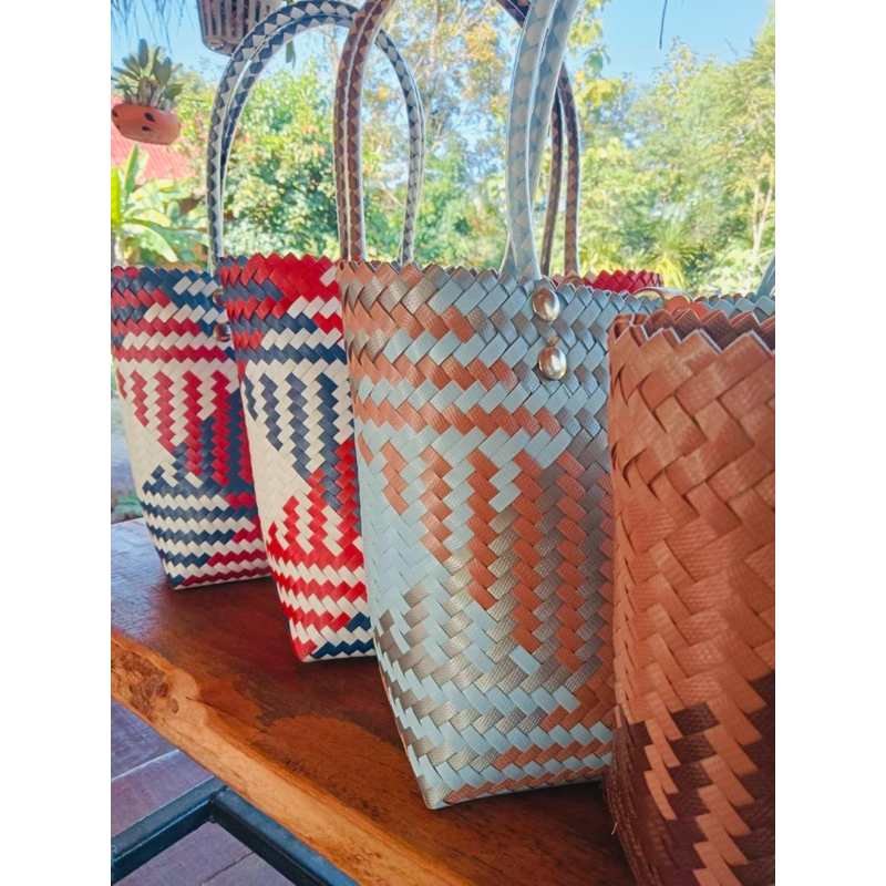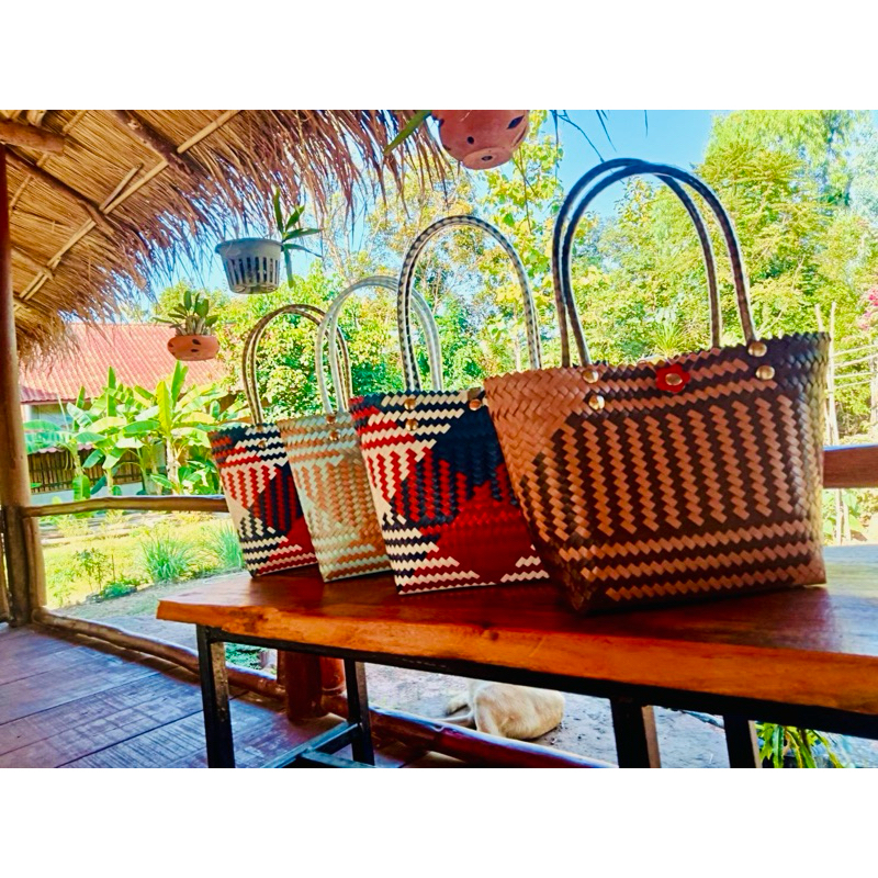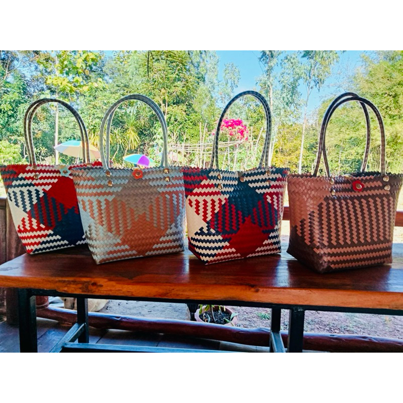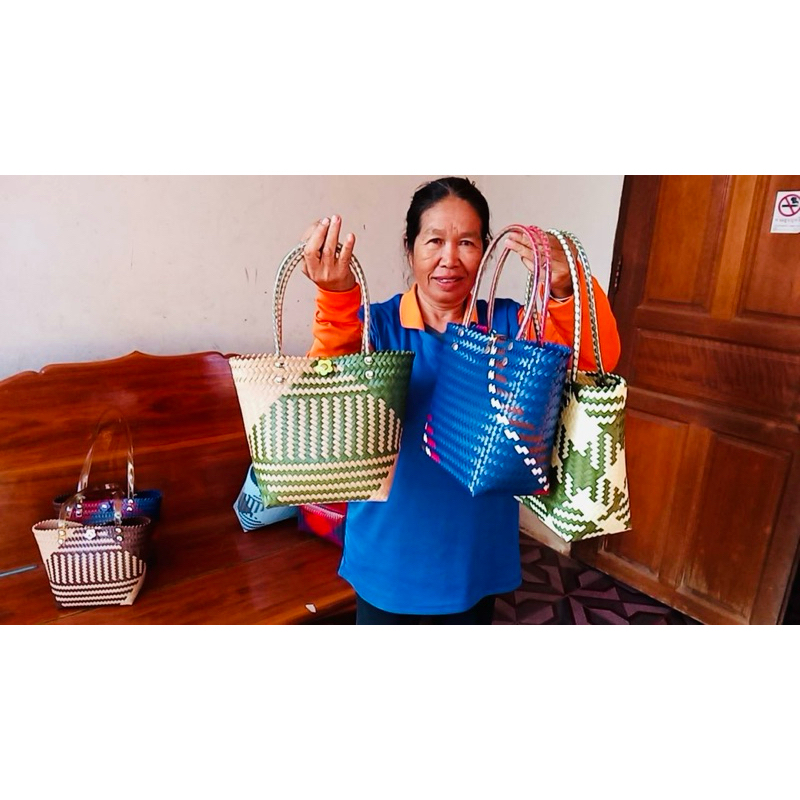 กระเป๋าสานพลาสติก กระเป๋าถือน่ารัก งานฝีมือ 100% กลุ่มแม่บ้านบ้านโคกน้ำเกลี้ยง หนองบัวลำภู สินค้า OTOP