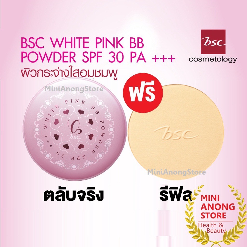 แป้งเพื่อผิวกระจ่างใส BSC White Pink BB Powder SPF 30 PA ++ ตลับจริงแถมรีฟิล 🍉
