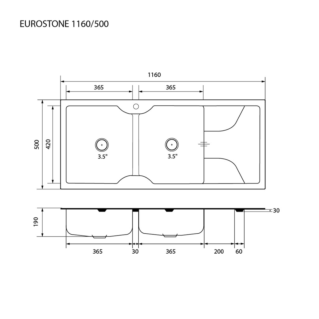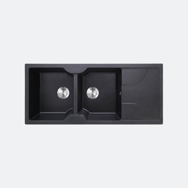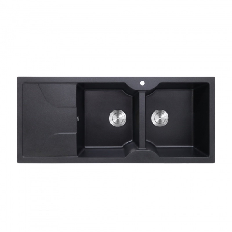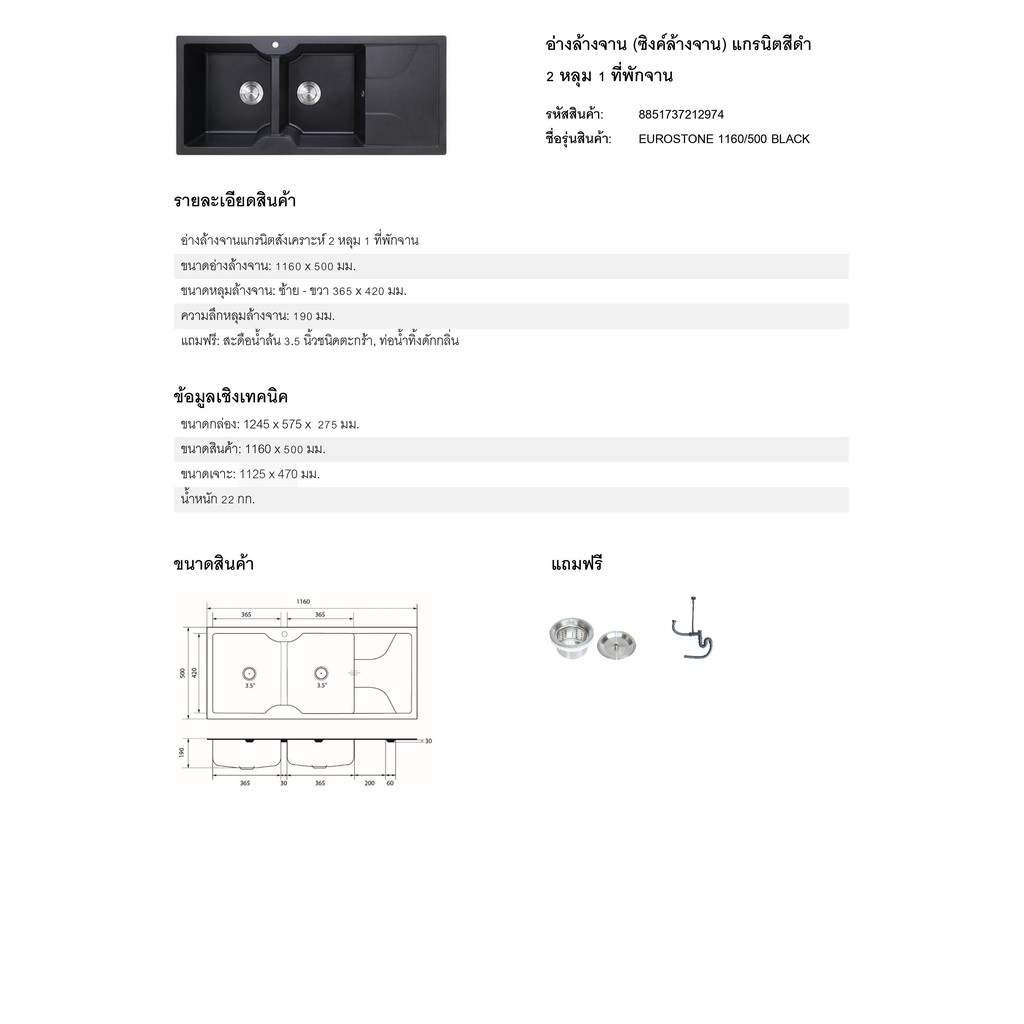(Eve) ซิงค์ล้างจาน 2 หลุม หินแกรนิตสีดำ มีที่พัก รุ่น EUROSTONE 1160/500 สีดำ ฟรี ของแถมอื่นๆ