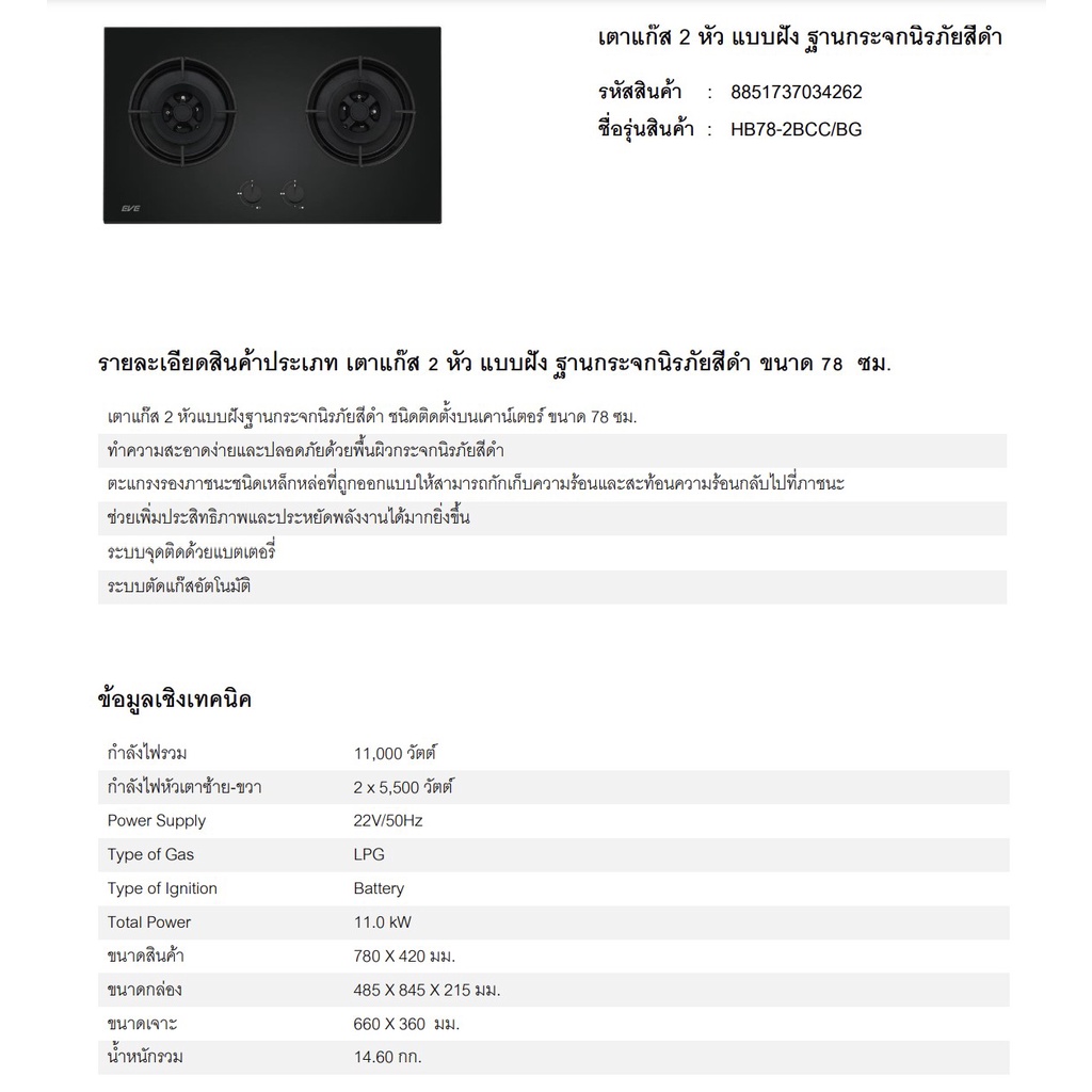 (Eve) เครื่องดูดควัน HC-LOFTBOX-90 + เตาแก๊สแบบฝัง 2 หัว เตาฐานกระจกนิรภัย HB78-2BCC/BG ฟรีท่อยืด 1.5 เมตร