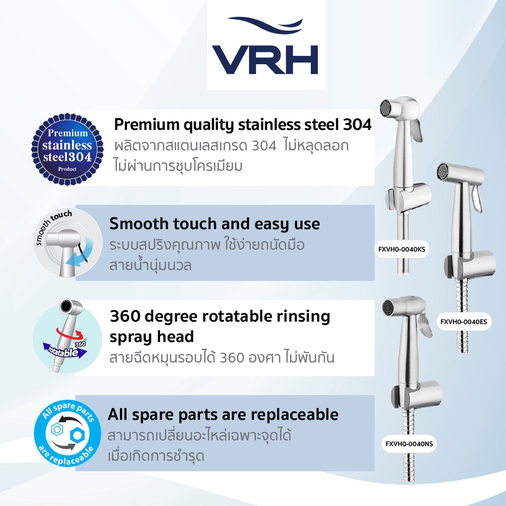 VRH ชุดสายฉีดชำระ สายฉีดก้น ชุดสายฉีดชำระสแตนเลส 3รุ่น FXVH0-0040ES FXVH0-0040KS FXVH0-0040NS [ของแท้100% ส่งจากโรงงาน]