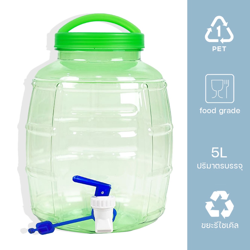Yongling ถังน้ำ ถังน้ำดื่ม PET ขนาด 5 ลิตร ถังน้ำมีก๊อกพร้อมหูหิ้ว รุ่น ลาย 2