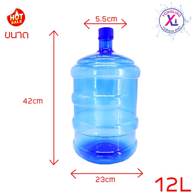 Yongling ถังน้ำดื่ม PET ขนาด 12 ลิตร ถังฝาเกลียว สีน้ำเงิน หนา ทนทาน