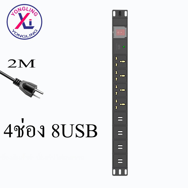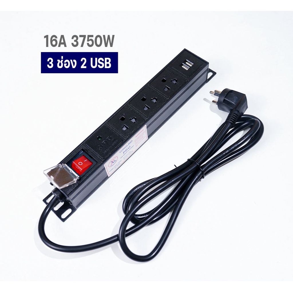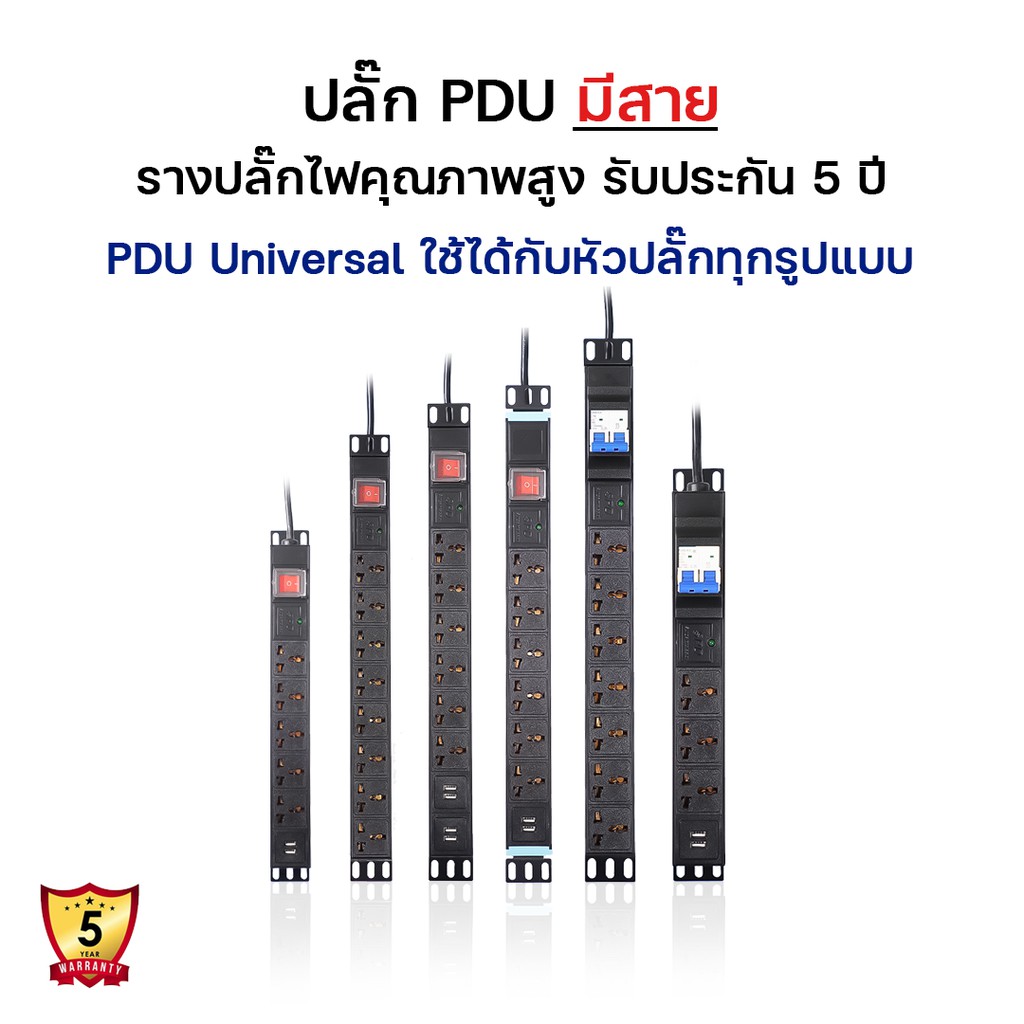 ปลั๊กไฟ PDUปลั๊กไฟ *พร้อมสายไฟ* ปลั๊กพ่วง ปลั๊ก3ตาตู้แร๊ค19 นิ้ สายไฟยาว 2-3 เมตร**ป้องกันไฟกระชาก