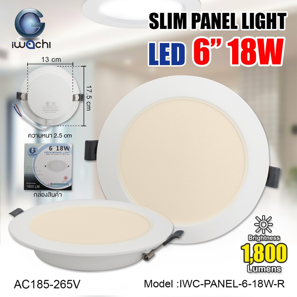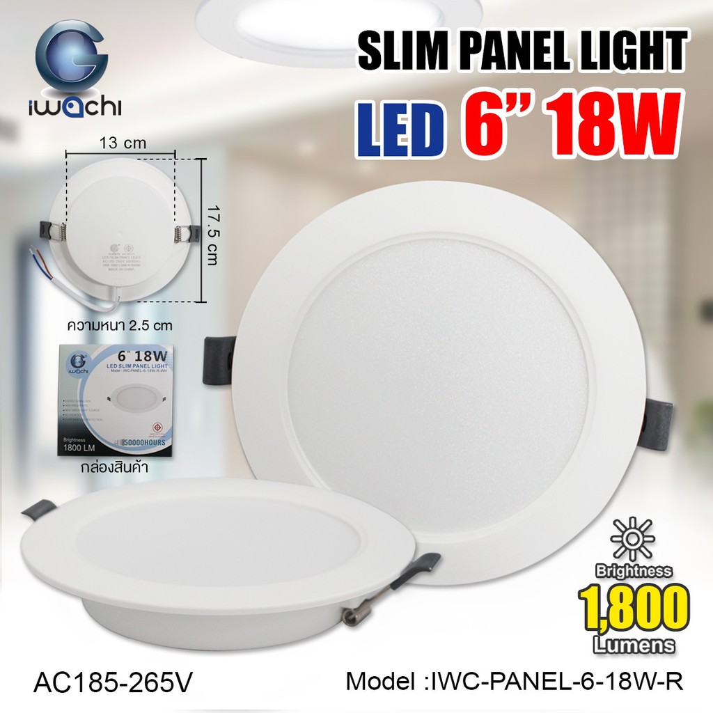 IWACHI โคมฝังฝ้า 6" 18W (กลม) แสงขาวและแสงวอร์มไวท์IWC-PANEL-6-18W-1800LM-R