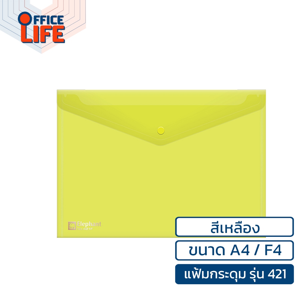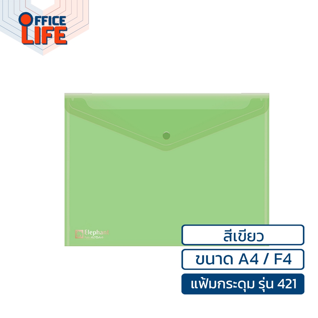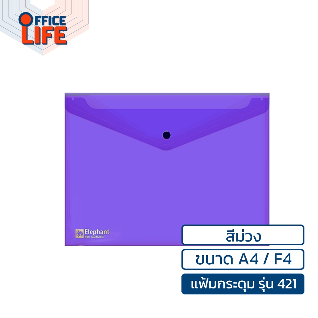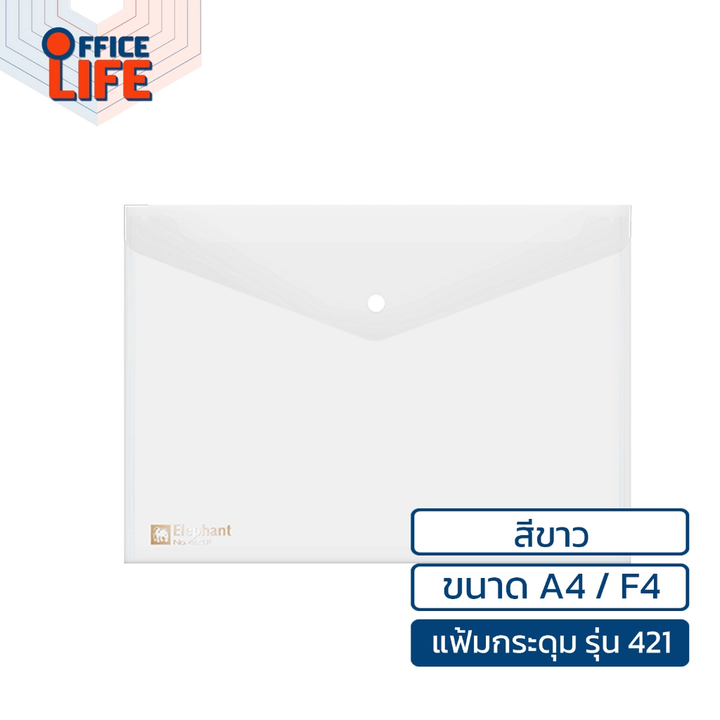 ELEPHANT (ตราช้าง) แฟ้มกระดุมพลาสติก แฟ้มซอง รุ่น 421 / 425 ขนาด A4 / F4 ( 1 แฟ้ม )