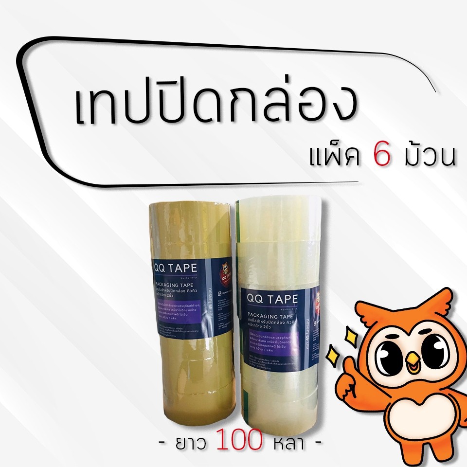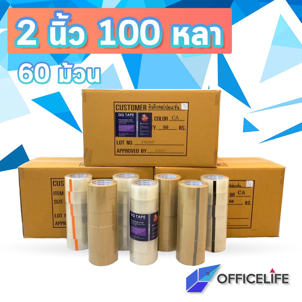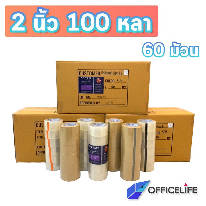 [ ยกลัง 100 หลา ] QQ Tape เทปปิดกล่อง เทป Opp ที่ปิดกล่อง กว้าง 2 นิ้ว (60 ม้วน / ยกลัง)