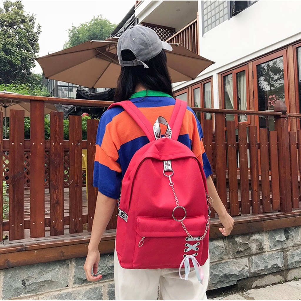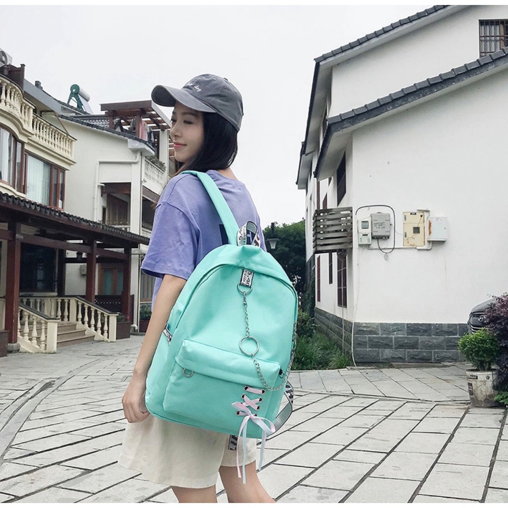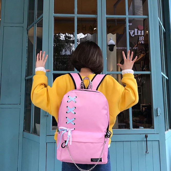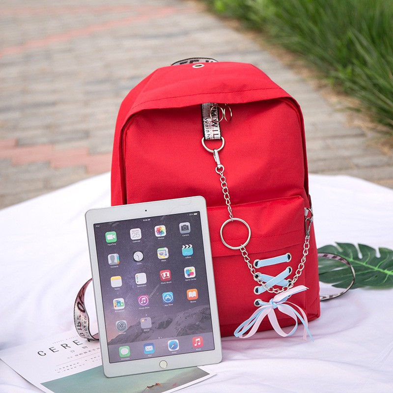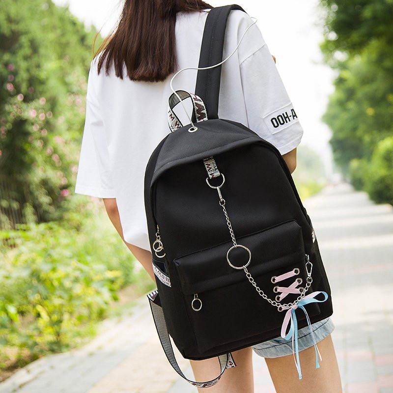 [โค้ดลดเพิ่ม 1517MMS] #OK0034 กระเป๋าเป้สะพายหลังแต่งโบว์ มีโซ่คล้อง เก๋ๆ