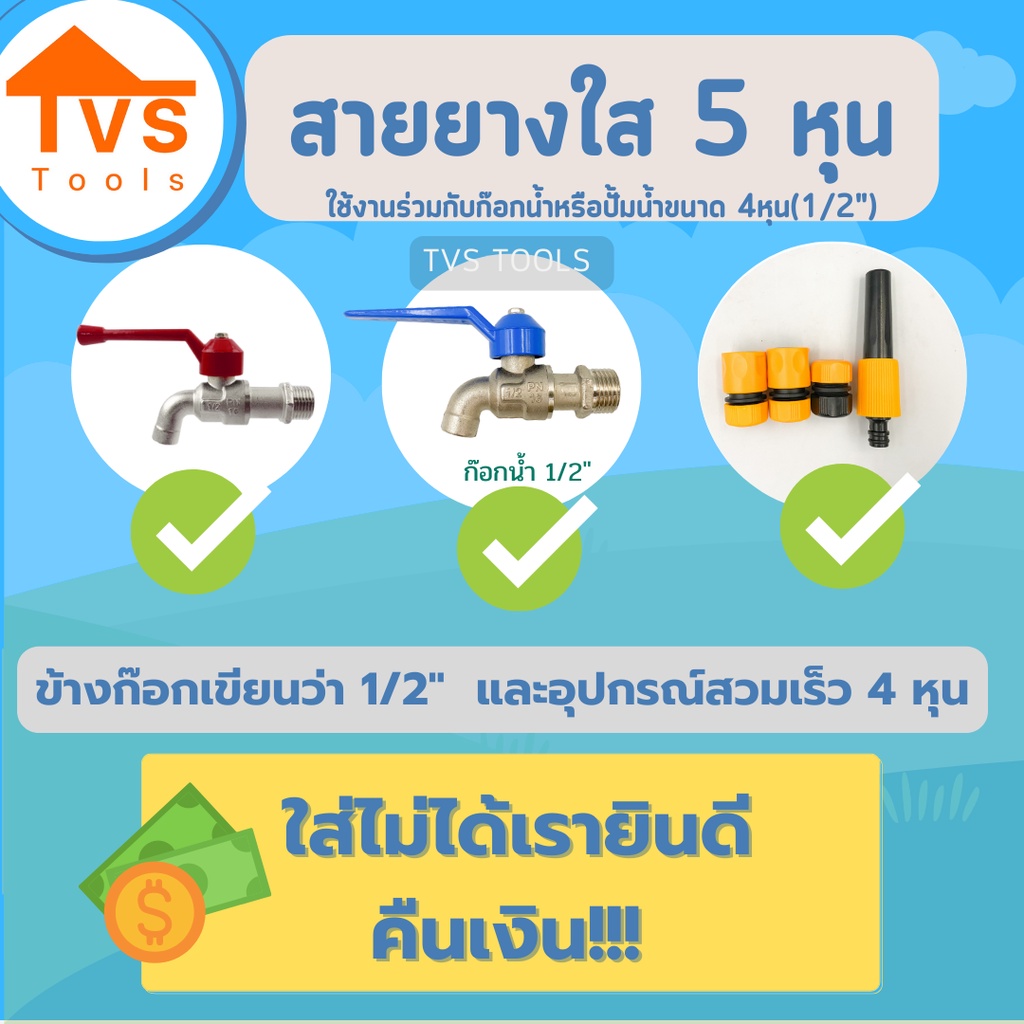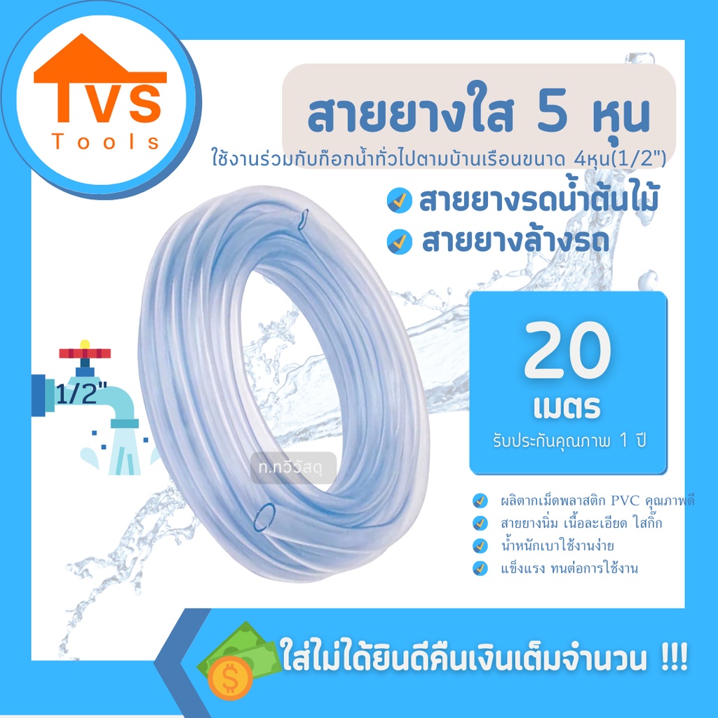 สายยางใสขนาด 5 หุน นิ่ม รดน้ำต้นไม้ ล้างรถ ความยาว 20 เมตร รับประกันคุณภาพ 1 ปี
