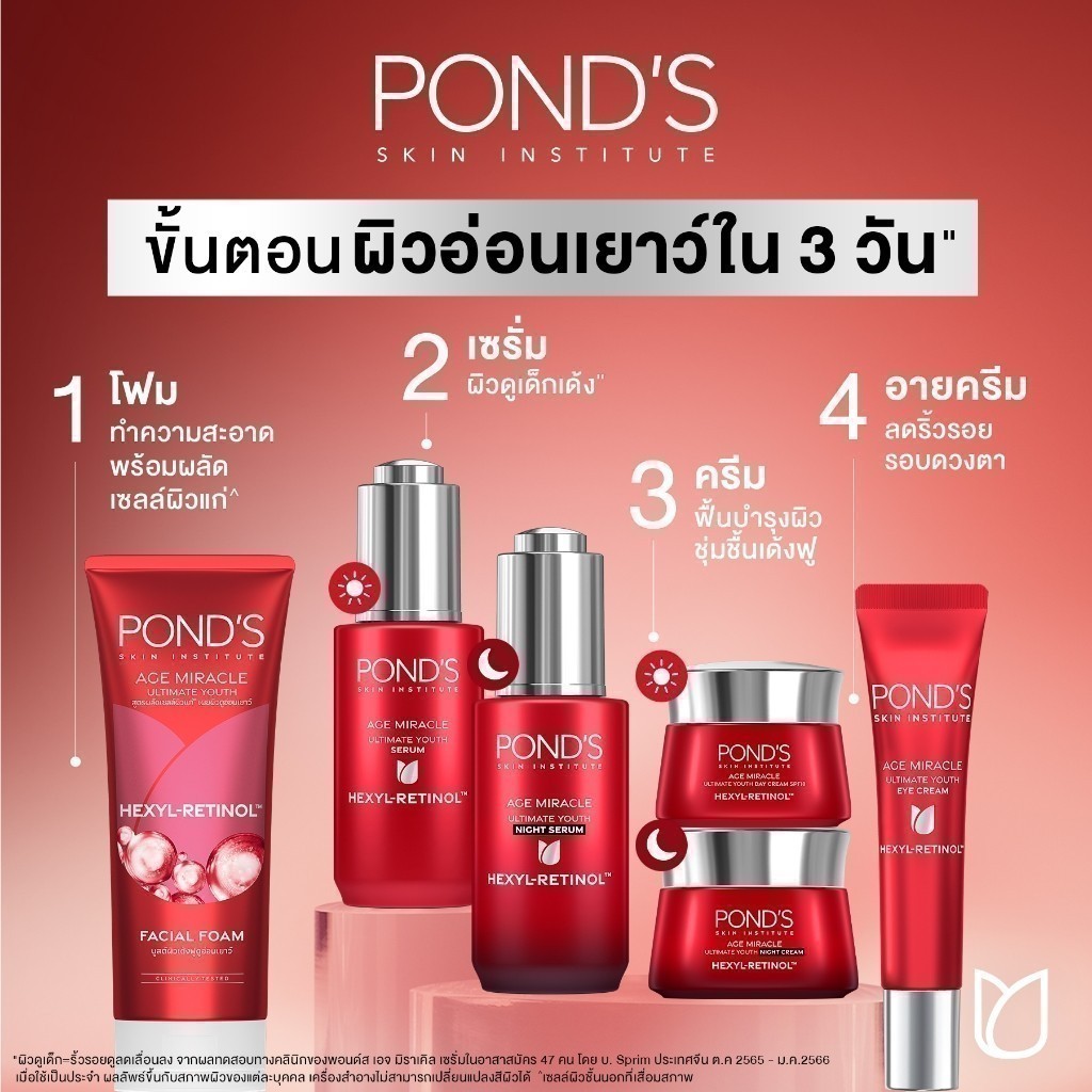 พอนด์ส เอจ มิราเคิล เซรั่มและครีมหน้าเด็ก สูตรกลางวันและกลางคืน ผิวเด้งฟู ลดริ้วรอย แพ็ค 4 ชิ้น