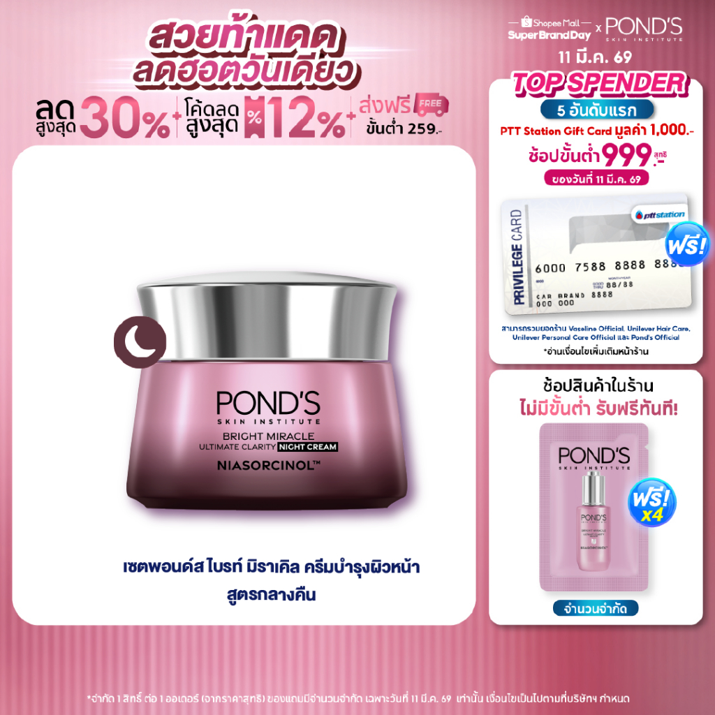 พอนด์ส ไบรท์ มิราเคิล ไนท์ ครีม ครีมหน้าใส บำรุงผิวชุ่มชื้น เติมความใสก่อนนอน ไนอาซอร์ซินอล 45 ก.