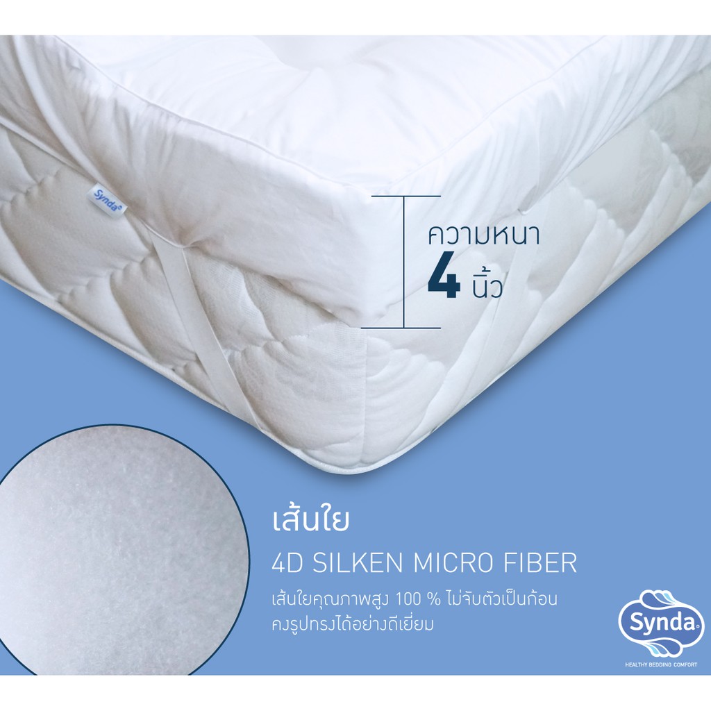Synda Topper ท็อปเปอร์ เส้นใยขนห่านเทียม4D เส้นใยSilken Micro Fiber หนา 4 นิ้ว นุ่มแน่น