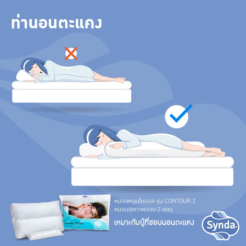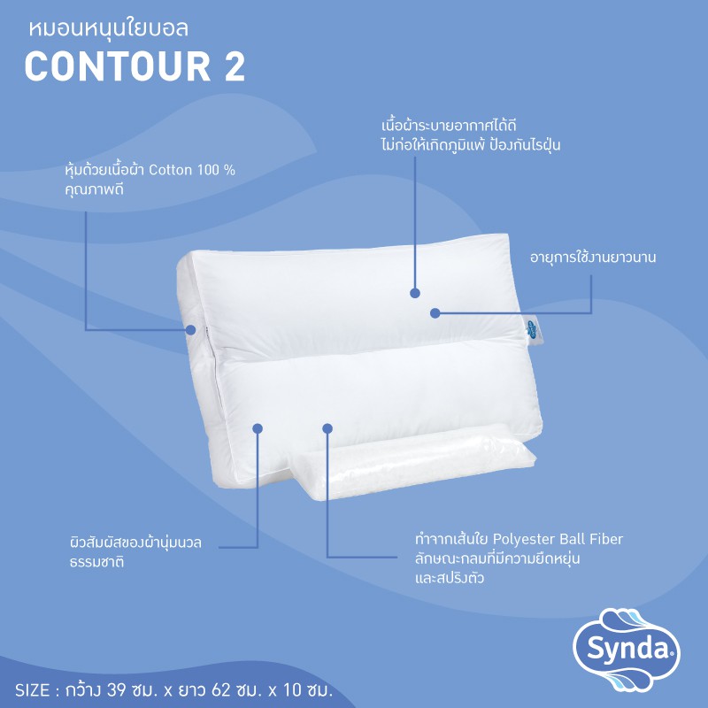 Synda หมอนหนุนเพื่อสุขภาพ เหมาะสำหรับชอบนอนตะแคง รุ่น Contour 2 ลดปวดคอ - แถมฟรี ใยสำหรับปรับระดับ