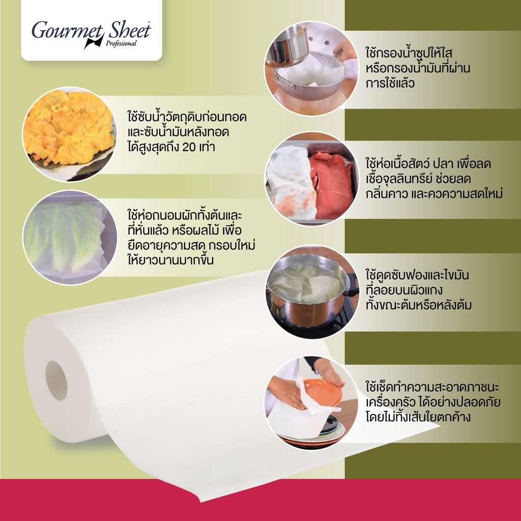 2 ม้วน x 60 แผ่น (120 แผ่น) กัวร์เมต์ ชีท กระดาษซับน้ำมัน ห่อทุเรียน แผ่นประกอบอาหารฟู้ดเกรด จากญี่ปุ่น Gourmet Sheet