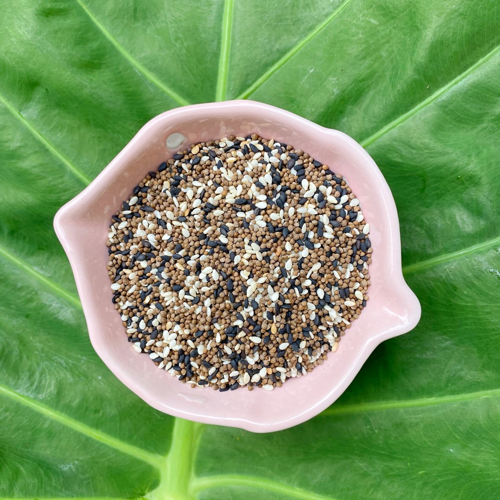 รวมงา 3 ชนิด (งาดำ , งาขาว , งาขี้ม้อน ) ในขวดแก้วที่สามารถบดงาสดๆได้เลย เลข อย.57-2-04764-6-0013