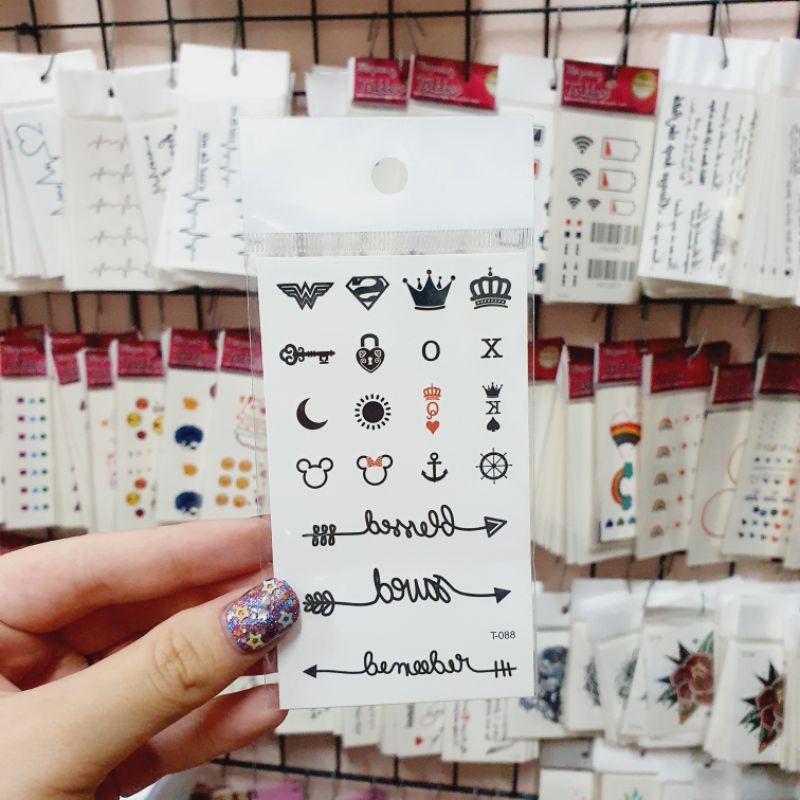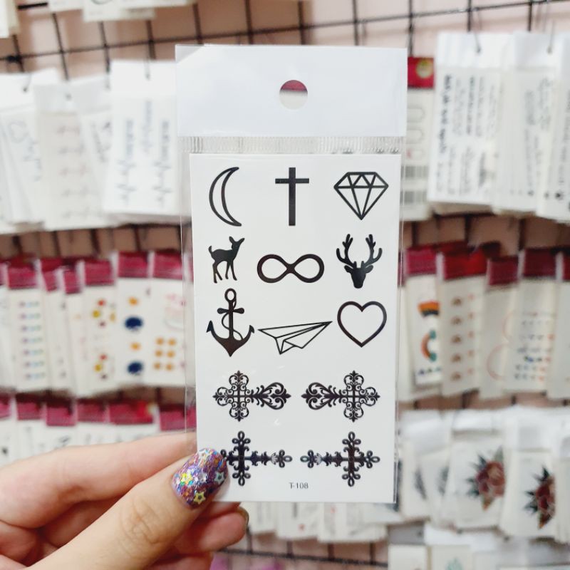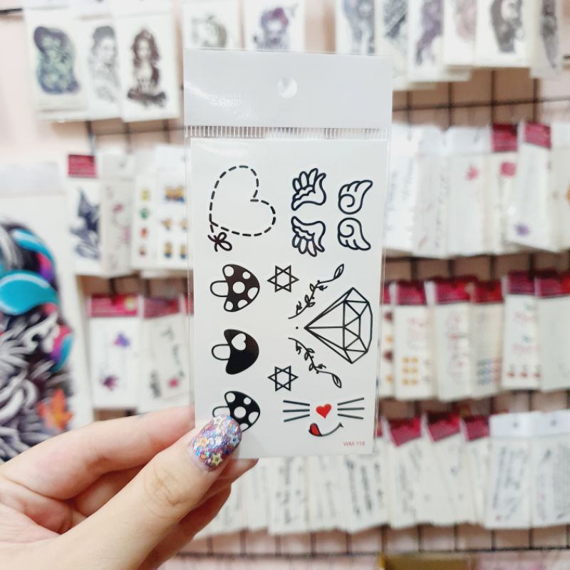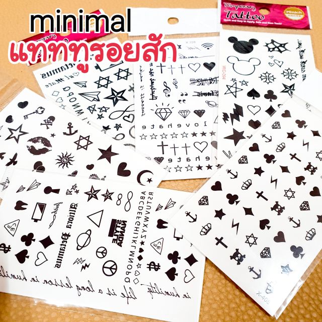 (มีส่งด่วน) แทททูรอยสักมินิมอล 🖤 tattoo minimal 🖤 แผ่นขนาด 6*10.5 CM ติดแล้วสีขึ้นเลย สามารถลบออกได้