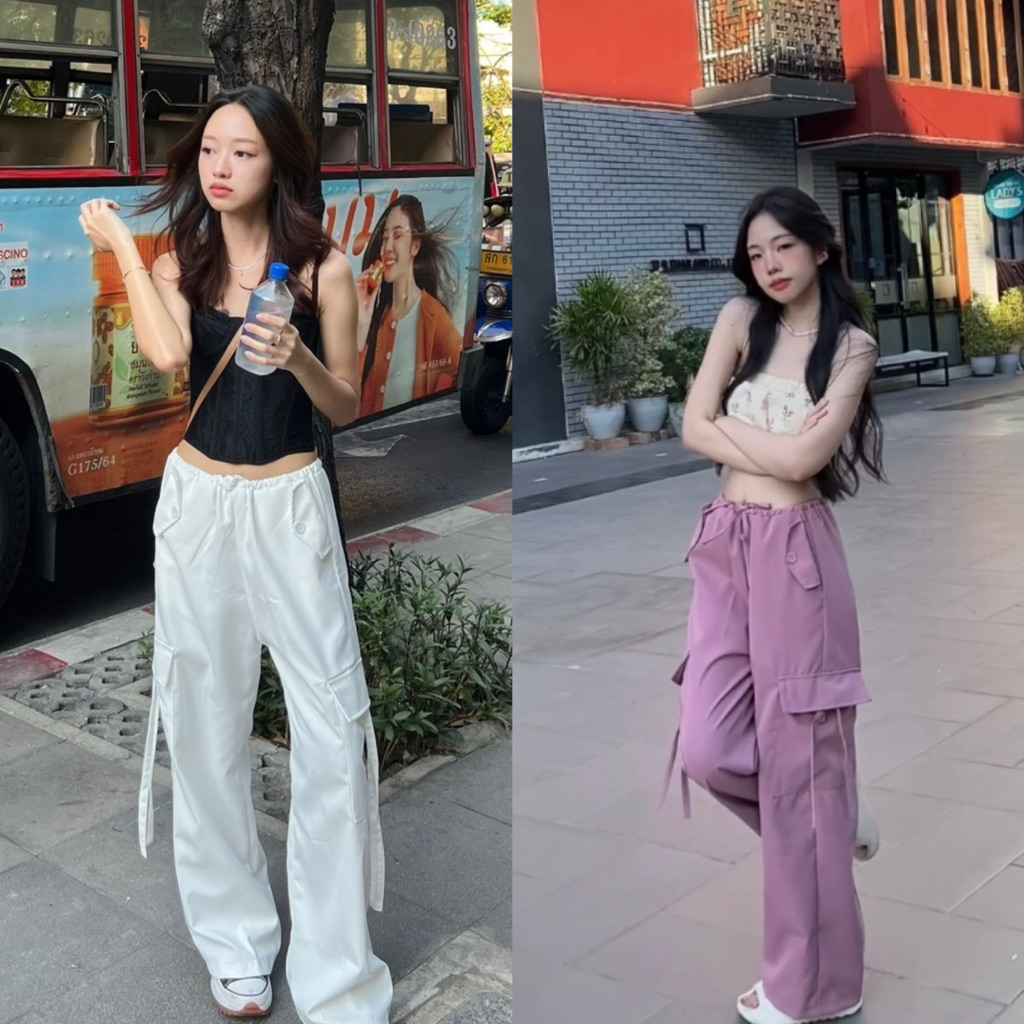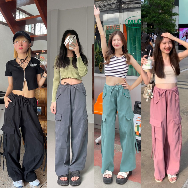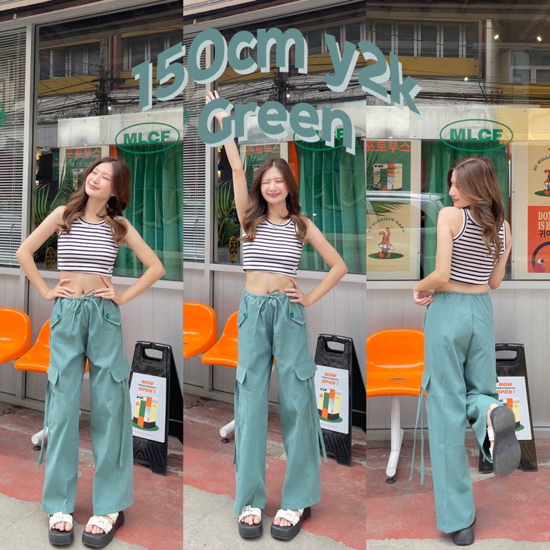 150cm y2k กางเกงคาร์โก้ เอวยาวยืด เชือกผูก 4กระเป๋า ความยาว37นิ้ว [playwork.store] (011-y2k)