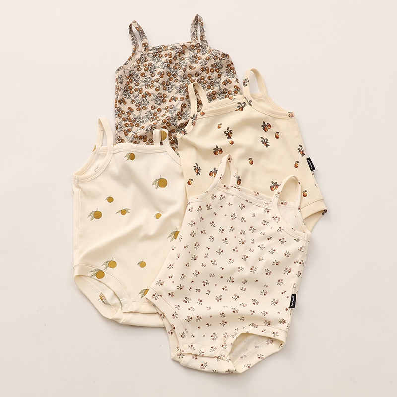ชุดจั๊มสูทวันพีช ผ้าฝ้าย พิมพ์ลายดอกไม้ และผลไม้ แฟชั่นฤดูร้อน สําหรับเด็กทารกแรกเกิด