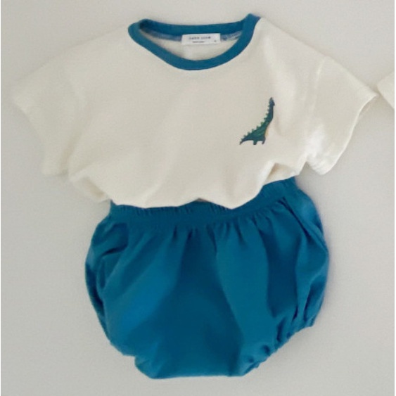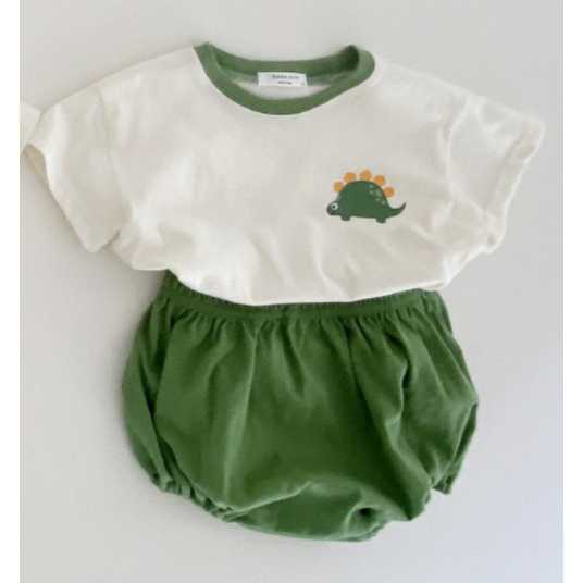 เสื้อยืดลายการ์ตูนไดโนเสาร์ + กางเกงขาสั้นสําหรับเด็กทารกแรกเกิด