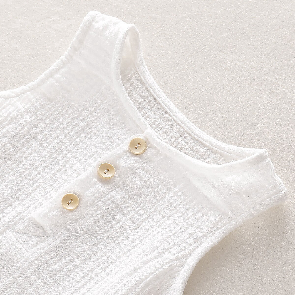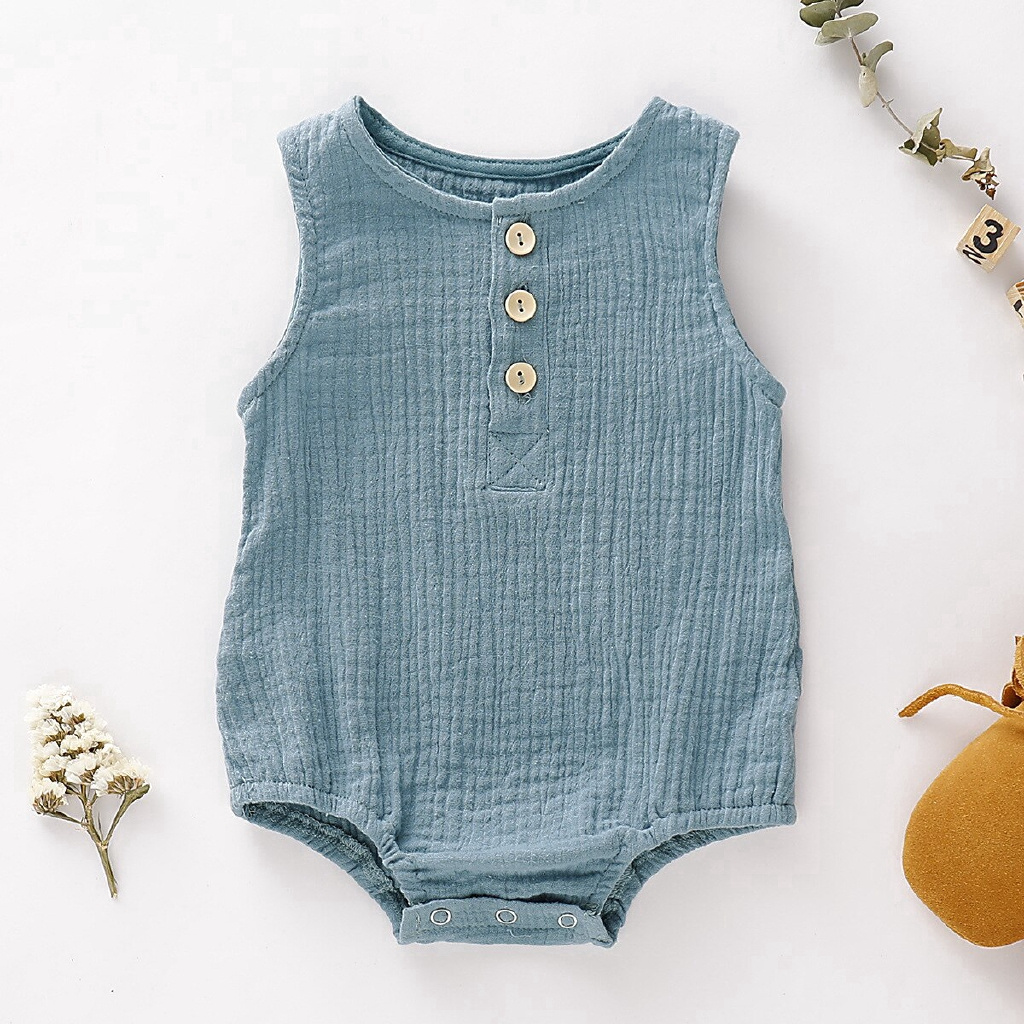 ชุดจั๊มสูทรอมเปอร์แขนกุดผ้าลินินสีพื้นฤดูร้อนสําหรับเด็กทารกแรกเกิดเด็กผู้ชายผู้หญิง