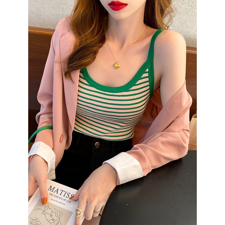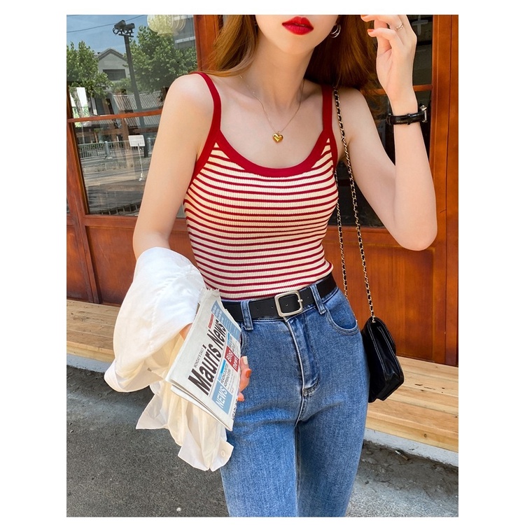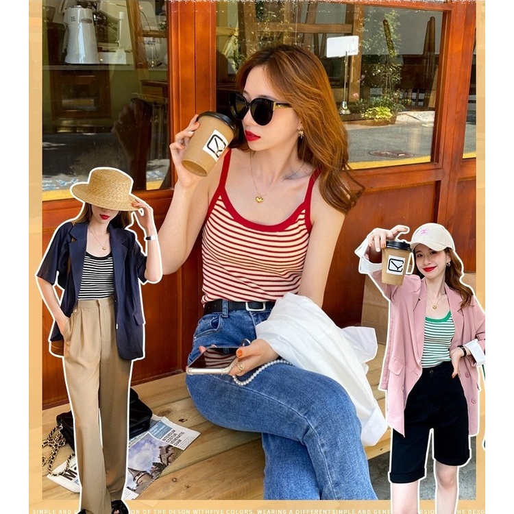 ของเข้าเเล้ว(ส่งด่วน) เสื้อสายเดี่ยว เสื้อเอวลอยผ้าไหมพรมลายทางพร้อมส่งมี 3สี summerนี้ไม่ควรพลาดเด้อจ้า