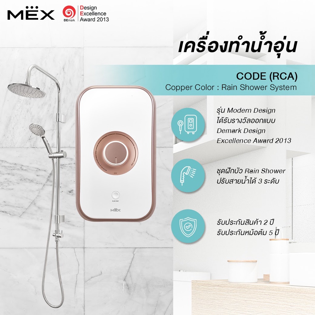 MEX เครื่องทำน้ำอุ่น 5100W : รุ่น CODE 5E (RCA) With Rain Shower : สีทองแดง