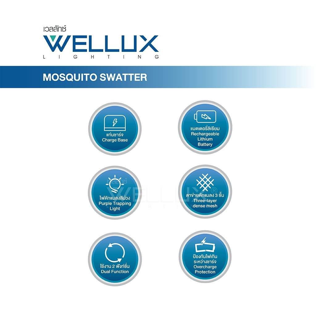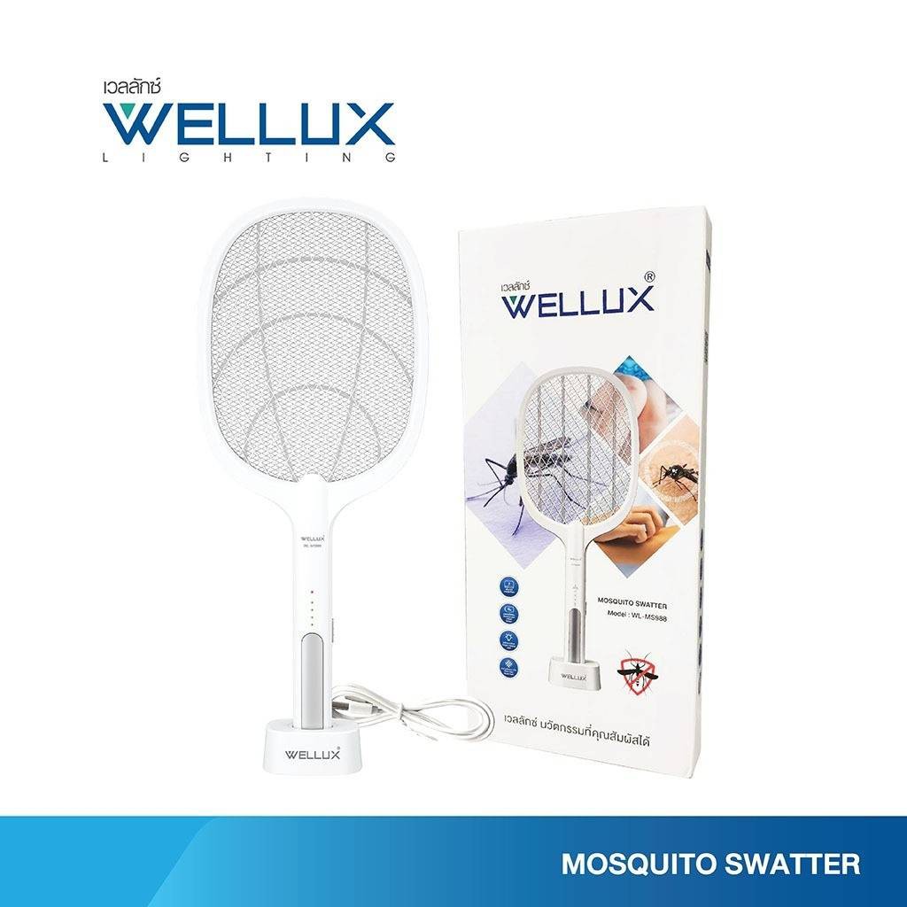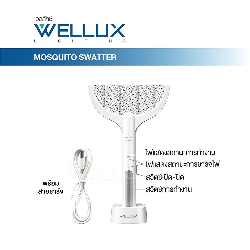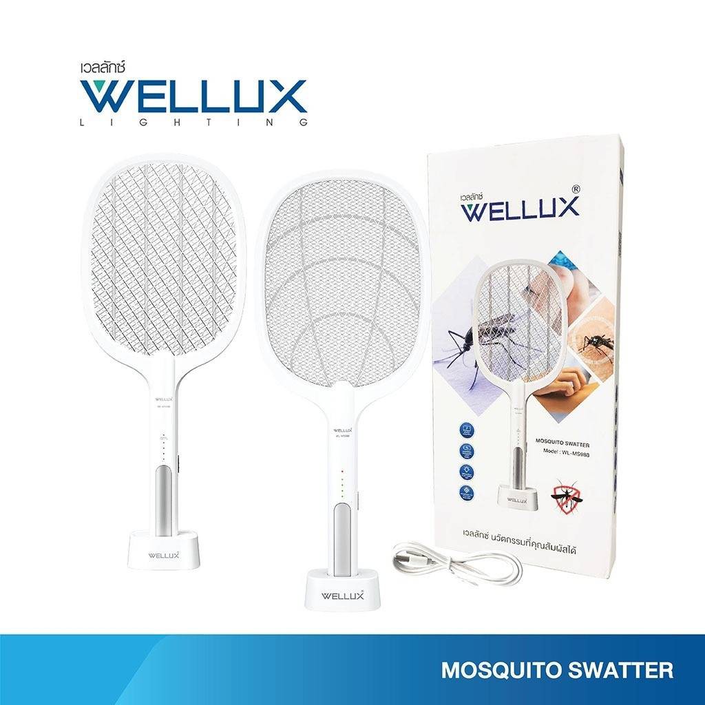 Wellux ไม้ตียุงไฟฟ้า แบบชาร์จ 2in1 พร้อมไฟดักยุงแสงสีม่วง มาพร้อมแท่นชาร์จ และ ครื่องดักยุงและแมลงไฟฟ้ามาพร้อมไฟล่อยุง