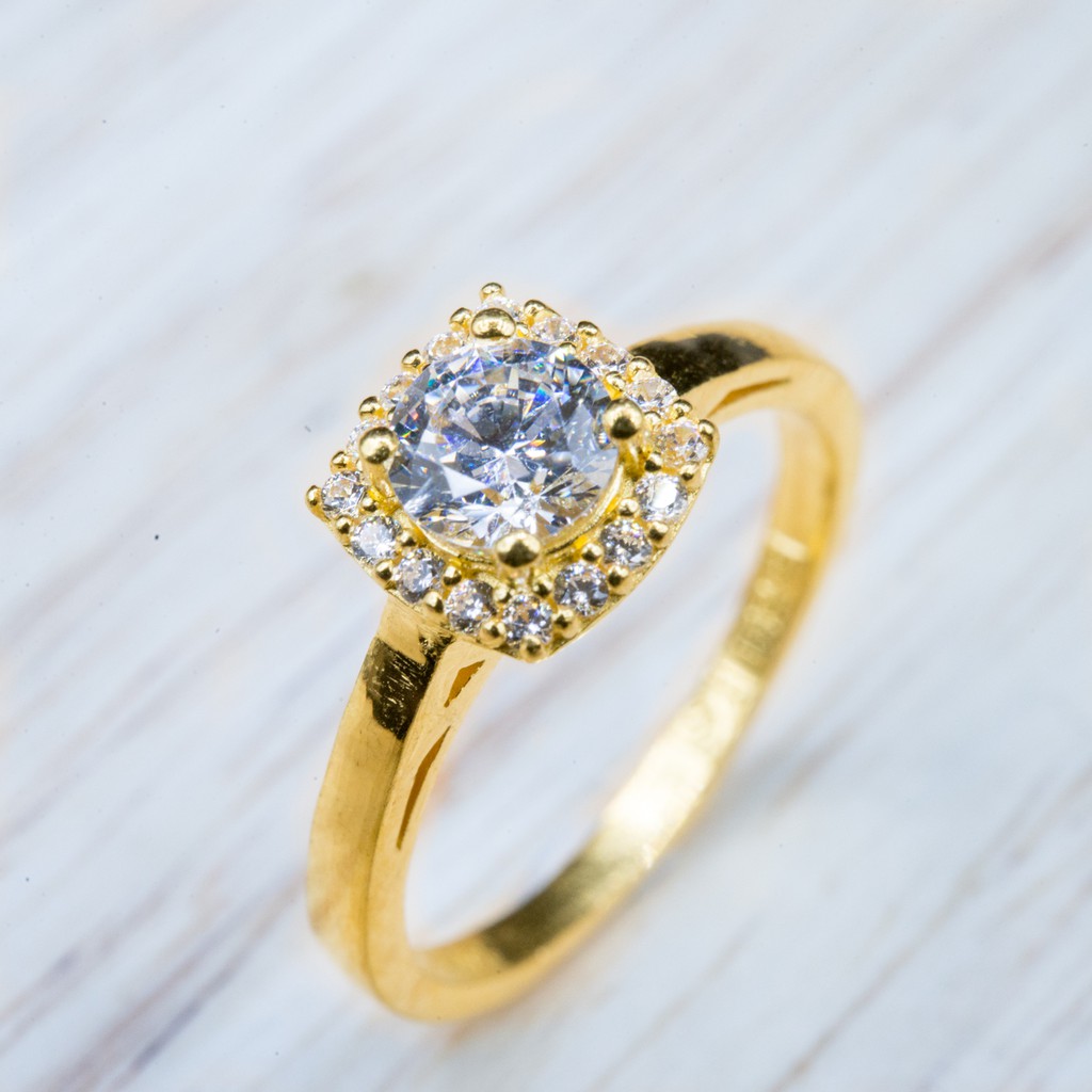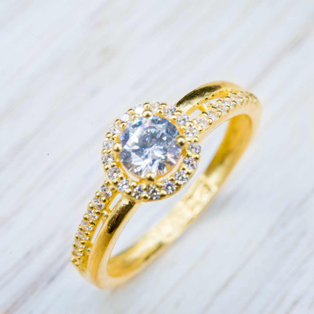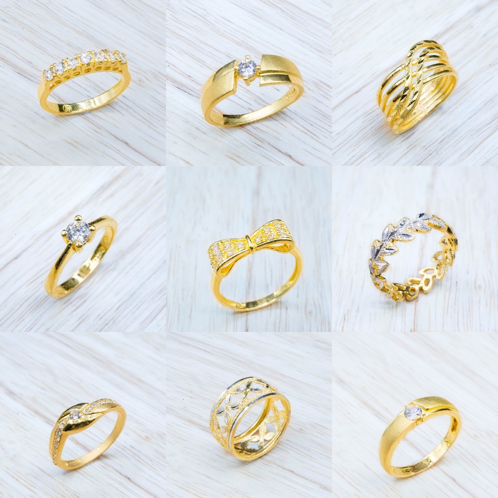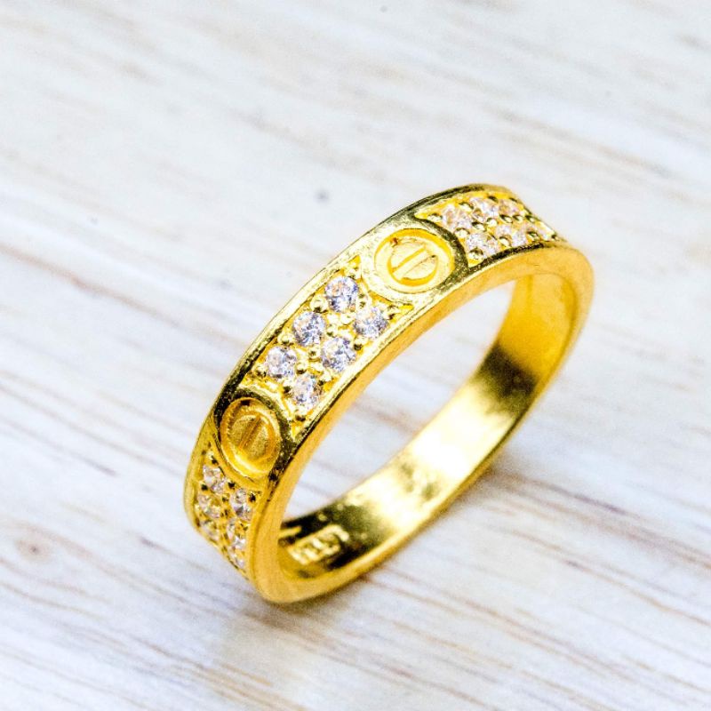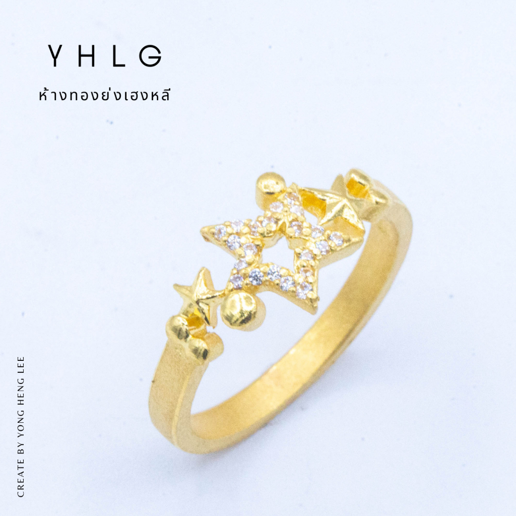 YHLG แหวนทองแท้ ประดับเพรชรัสเซีย [มีให้เลือกหลายลาย] น้ำหนัก 1 สลึง