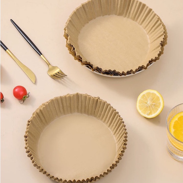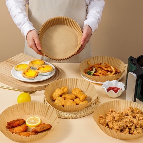 กระดาษรองอบขนมแบบกลม กระดาษรองหม้อทอดไร้น้ำมันสำหรับเตาอบอาหารในครัวถ้วยกระดาษเคลือบซิลิโคนอย่างดี