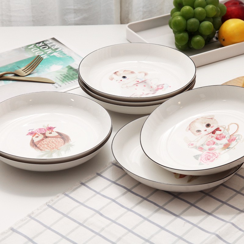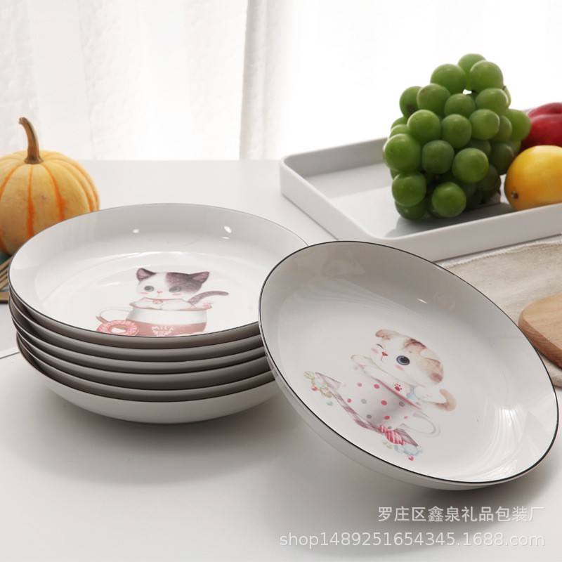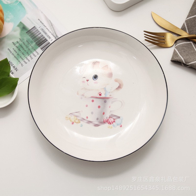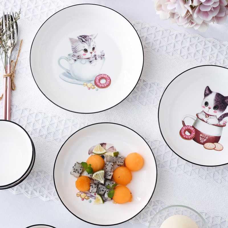 จานเซรามิก 8นิ้ว 1ใบ ลายแมว น่ารัก ถ้วย6นิ้ว จาน มี 6 ลายให้เลือก