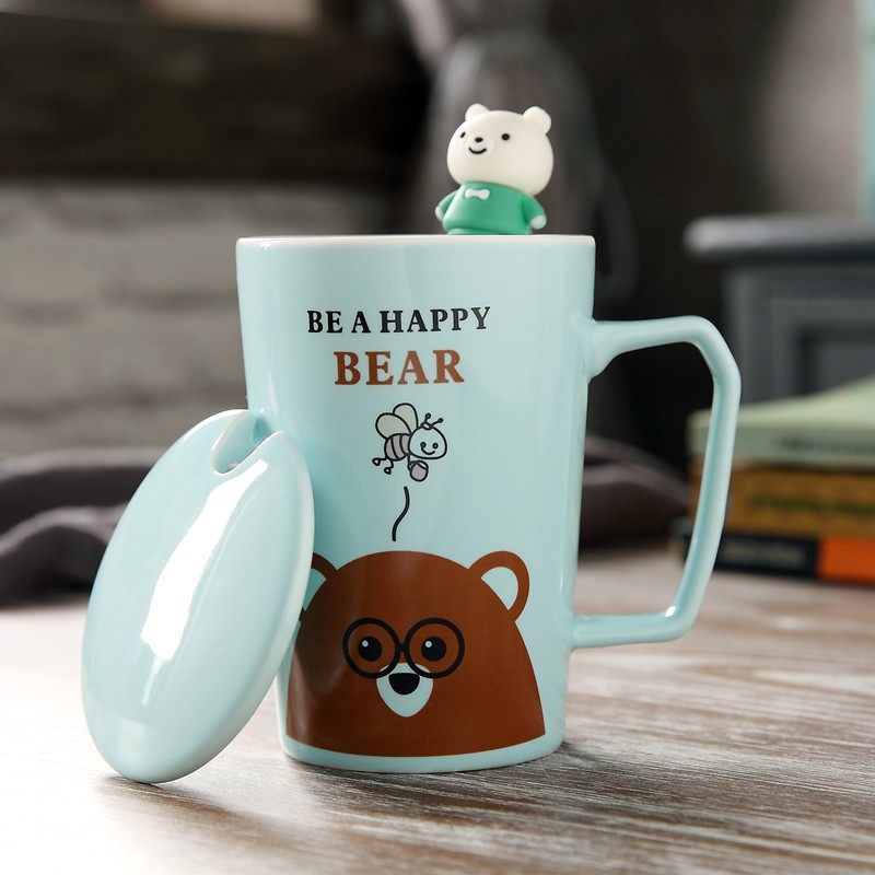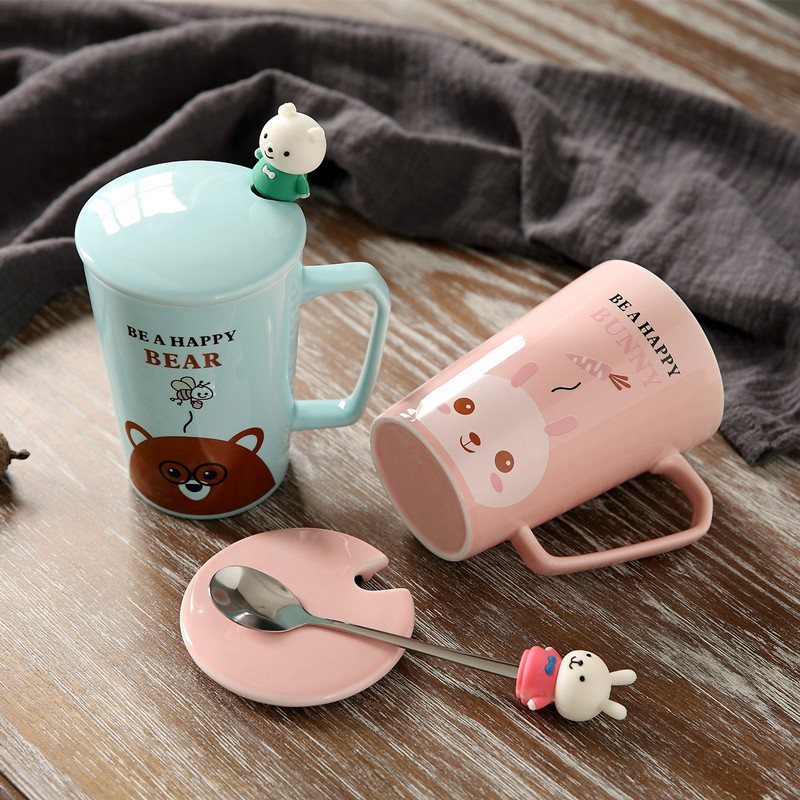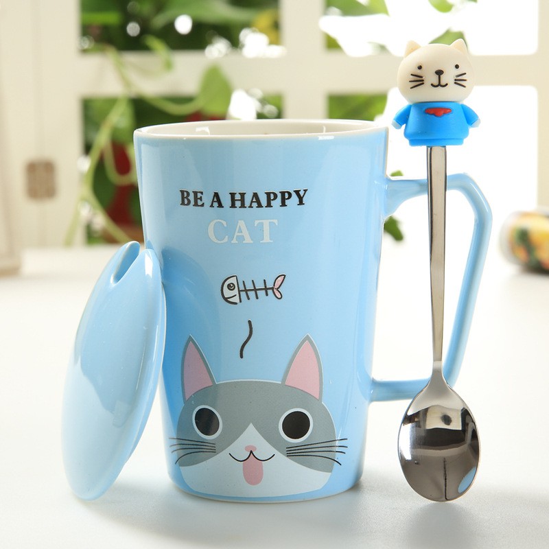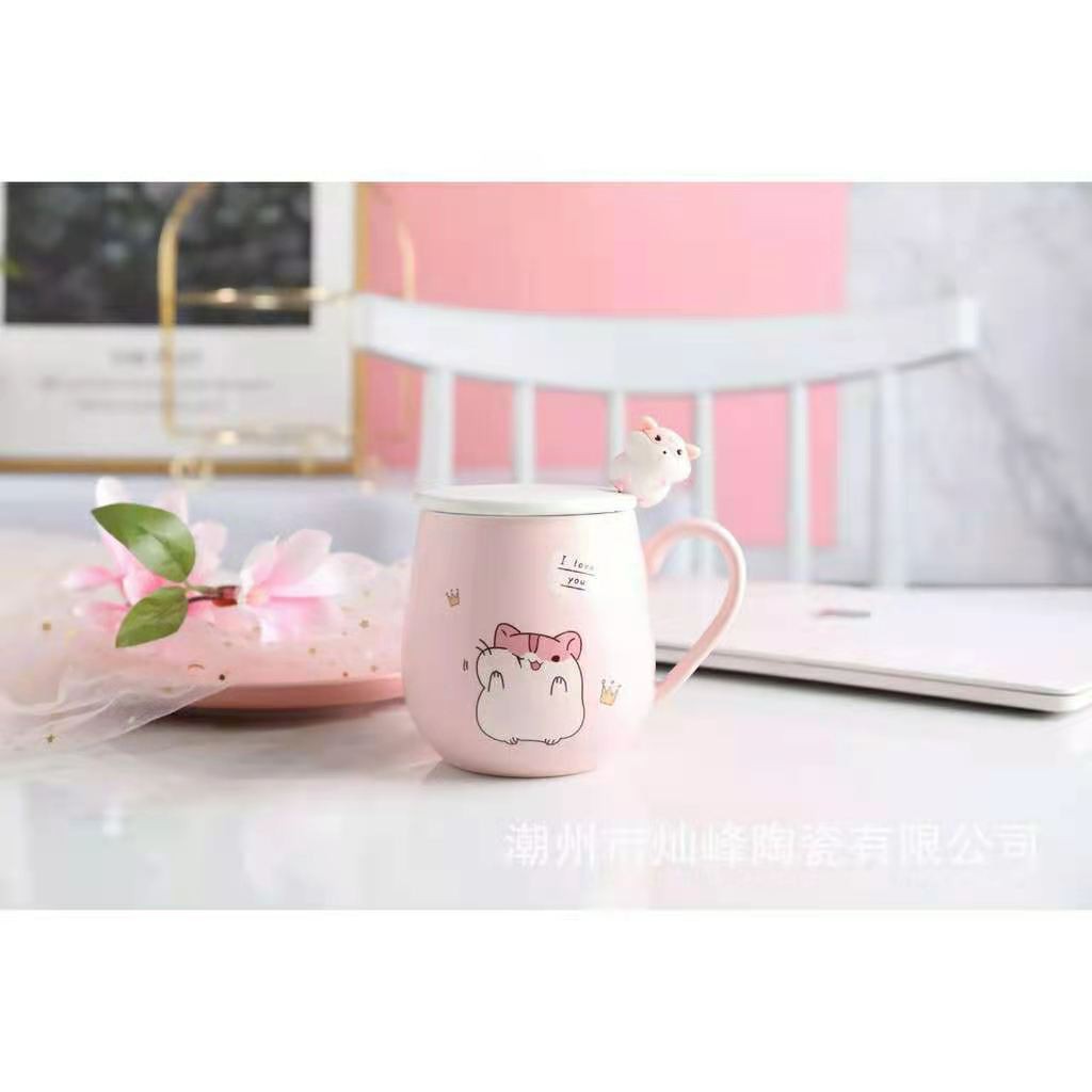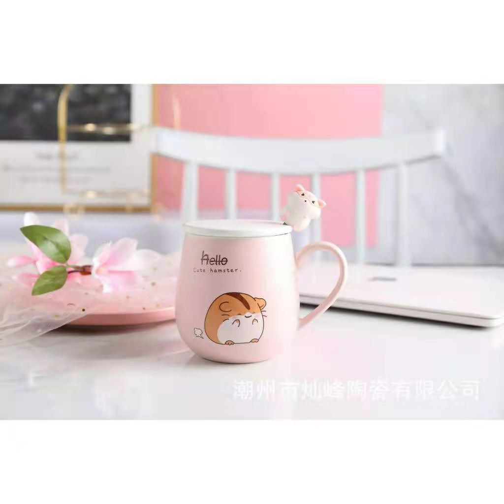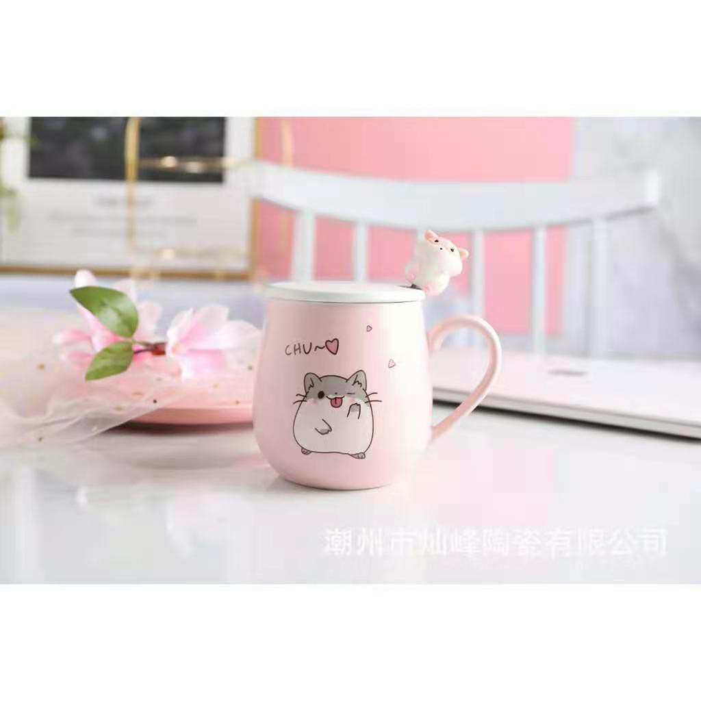 แก้วกาแ ฟ เนื้อเซรามิค มีช้อนและฟาปิด พร้อมส่งในไทย