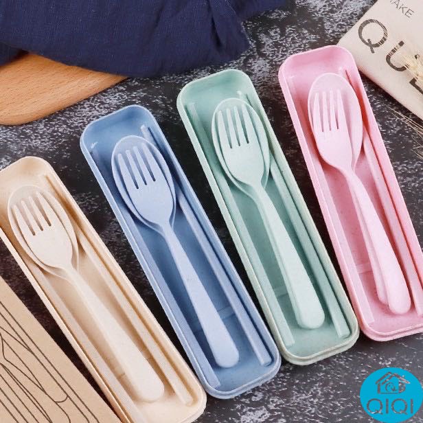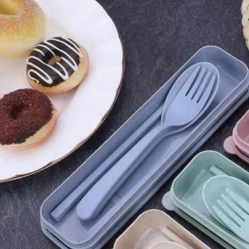 ชุดช้อนส้อม+ตะเกียบ พร้อมกล่องใส่ขนาดพกพา มี4 สีให้เลือก(พร้อมส่งจากไทย)