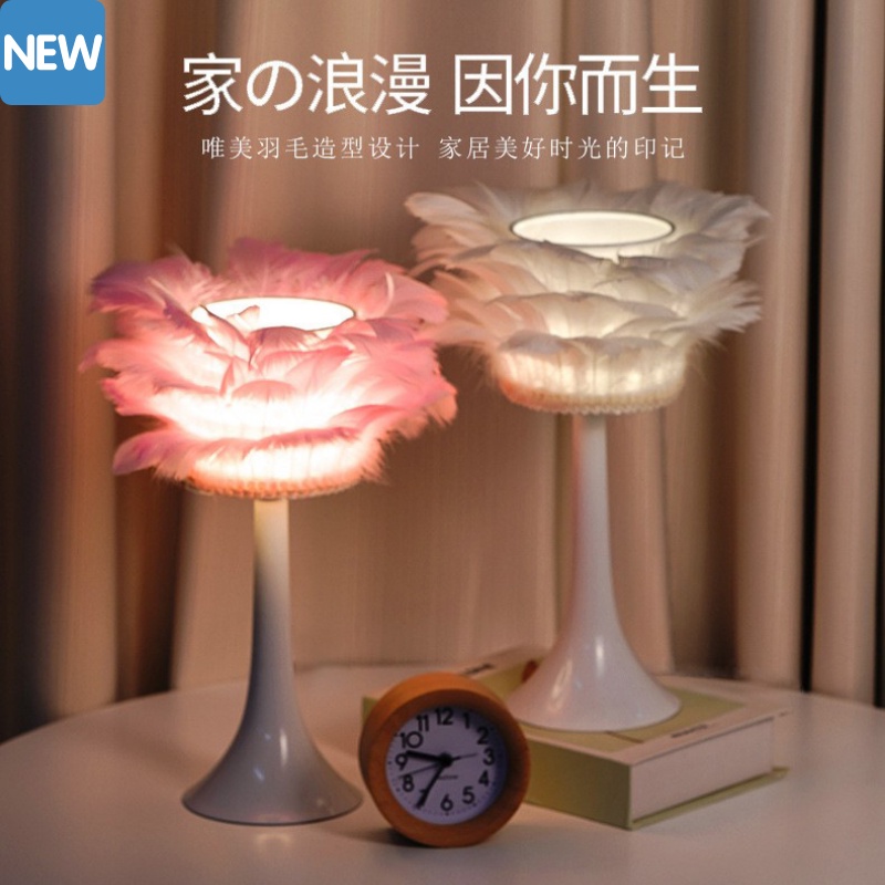 [HOMYL1 ] โคมไฟตั ้ งโต ๊ ะ Feather Shade โต ๊ ะข ้ างเตียง Night Light Decor LED สีขนาดเล็กไฟกระพริบไฟสตริงเต็มไปด้วยดาวคริสต์มาสสาวหัวใจขนนกโคมไฟตั้งโต๊ะห้องพักหอพักตกแต่งไฟดาว