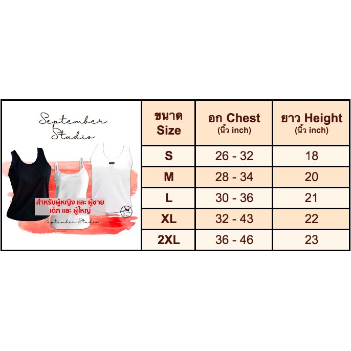 เสื้อซับสีขาว เสื้อกล้าม เสื้อสายเดี่ยว ใส่ได้ทั้งเด็กและผู้ใหญ่ ชายและหญิง มี 4 ไซส์