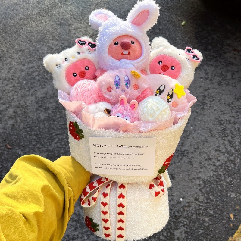 ช่อดอกไม้ ตุ๊กตาช่อดอกไม้ ตุ๊กตาน่ารัก ของขวัญวาเลนไทน์ ของขวัญวันเกิด (ถุงของขวัญ + การ์ดอวยพร)