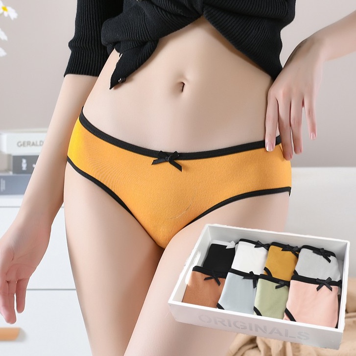 #326 ขอบดำ กางเกงในผ้าไฟเบอร์ น่ารัก มีโบว์ สีสด สีสวย มีหลากสีให้เลือก COK