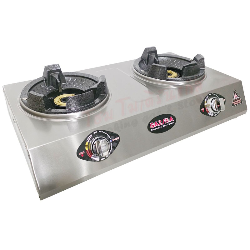 GAZMA เตา แก๊สตั้งโต๊ะคู่ หัวเตาแรงดันสูง 2หัว KB4 จุดติดอัตโนมัติ รุ่น GMC-STL2KB3.5-AUTO