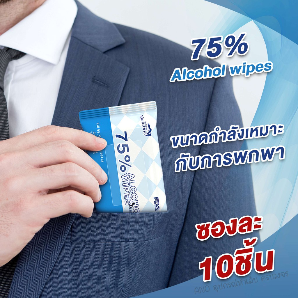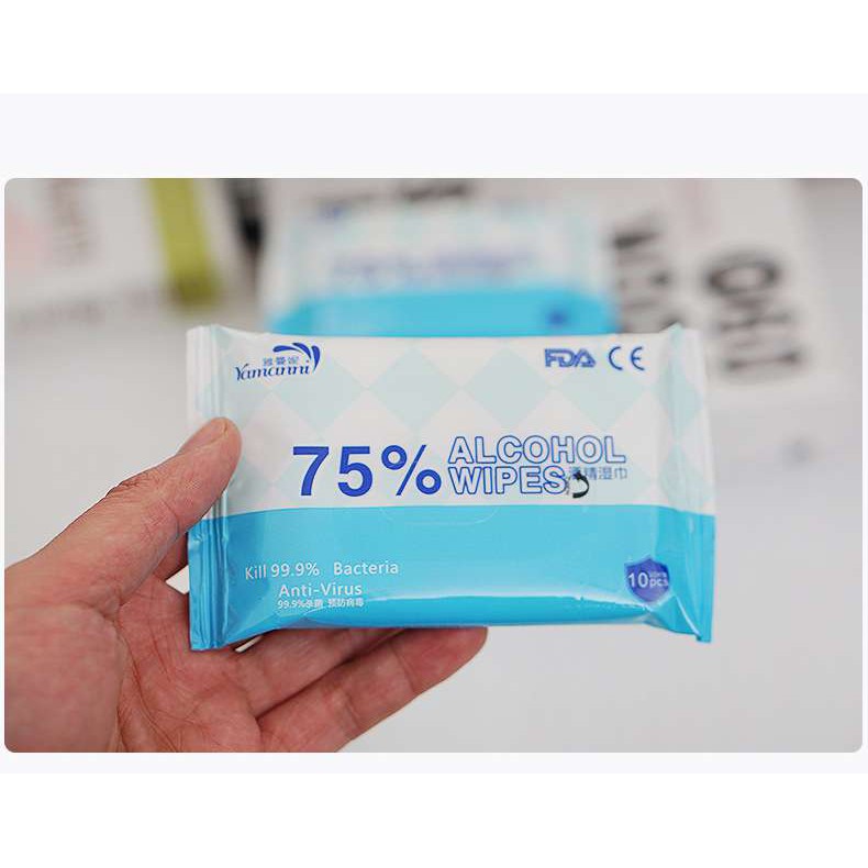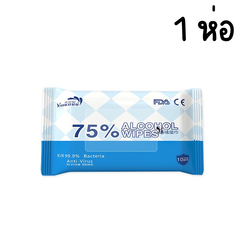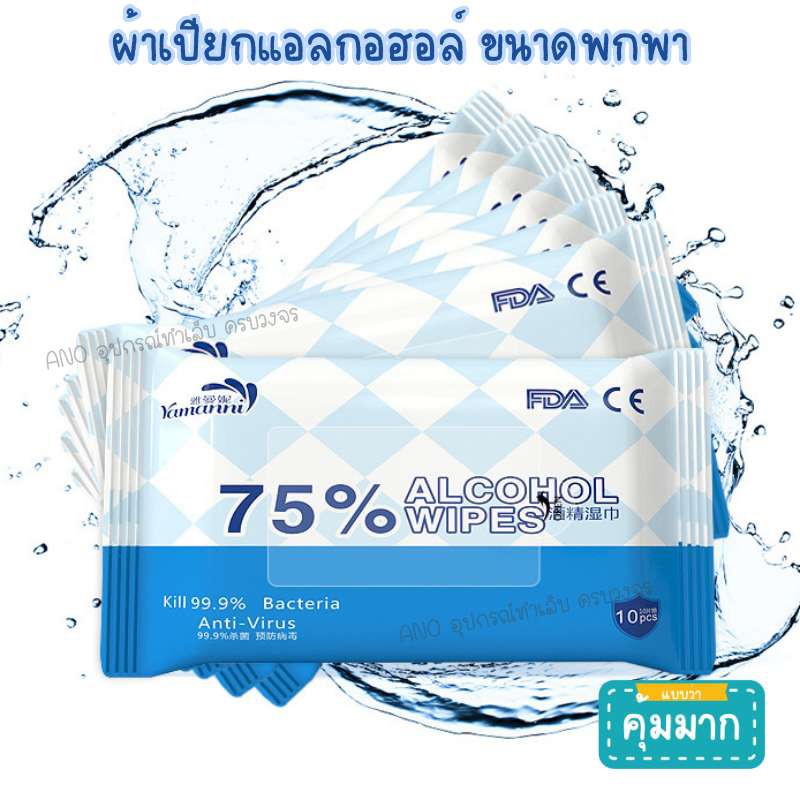 ทิชชู่เปียกแอลกอฮอล์ ขนาดพกพา ซองละ10ชิ้น ผ้าเปียกแอลกอฮอล์ เช็ดทำความสะอาด ใช้แล้วทิ้ง