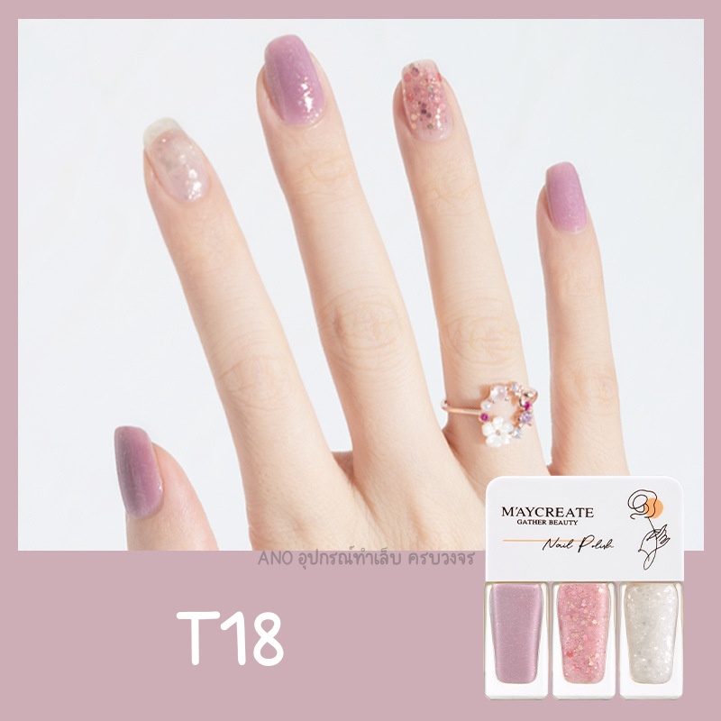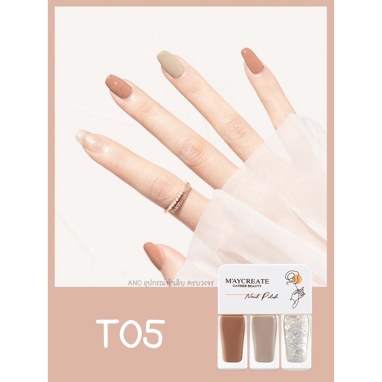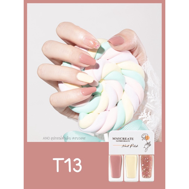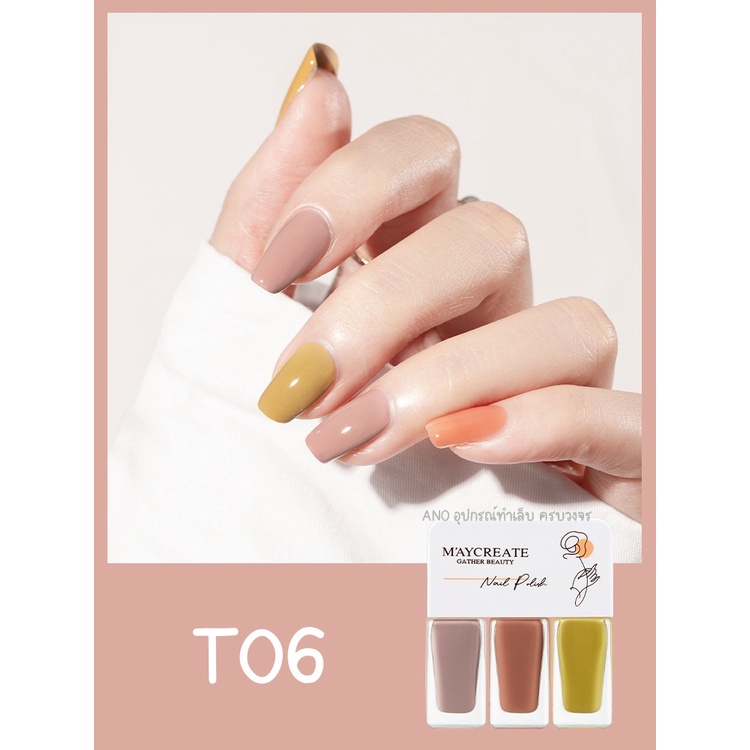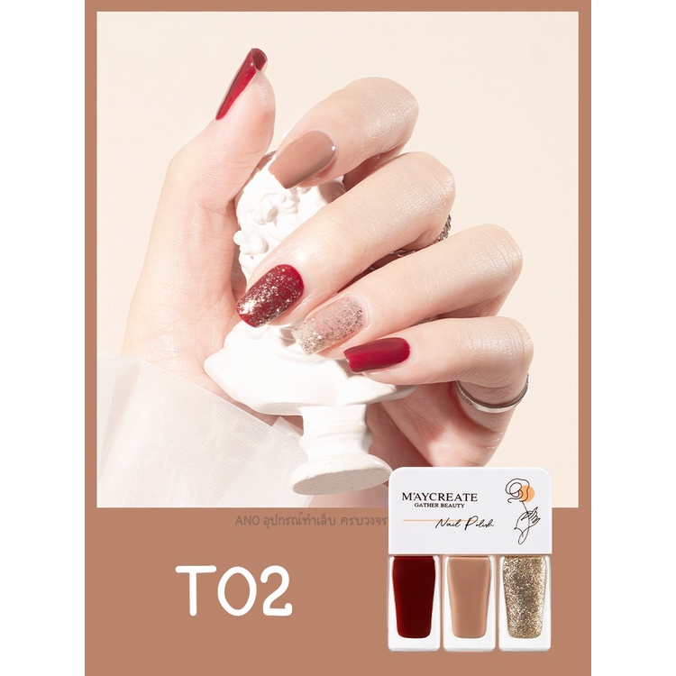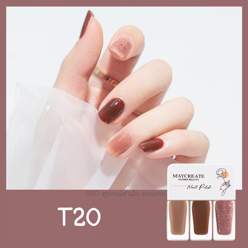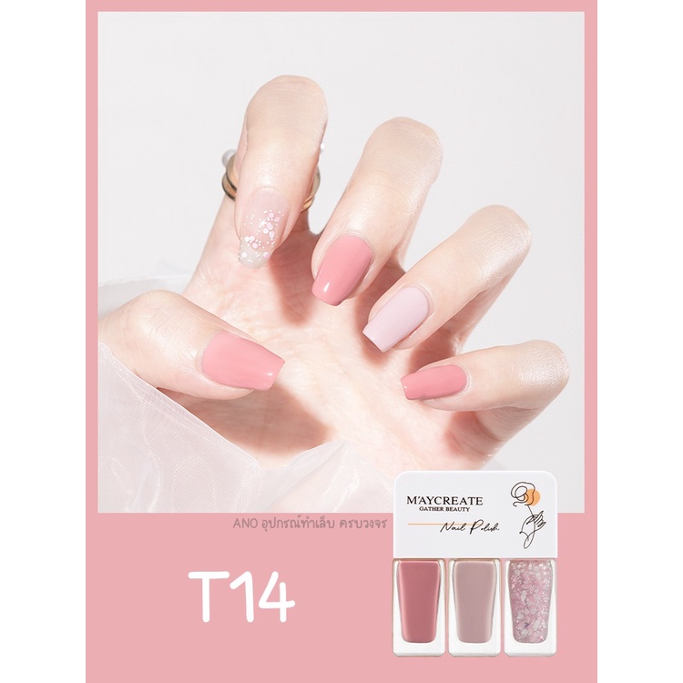 Maycreate ยาทาเล็บ 3โทน สีทาเล็บ รุ่นแห้งไว ไม่ต้องอบ ชนิดลอกออกได้