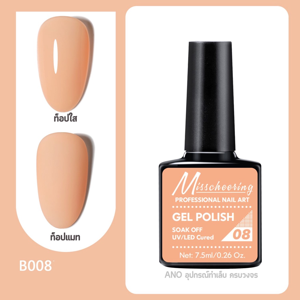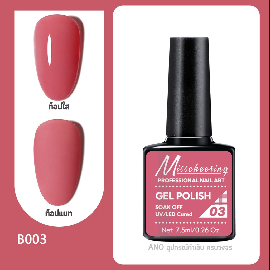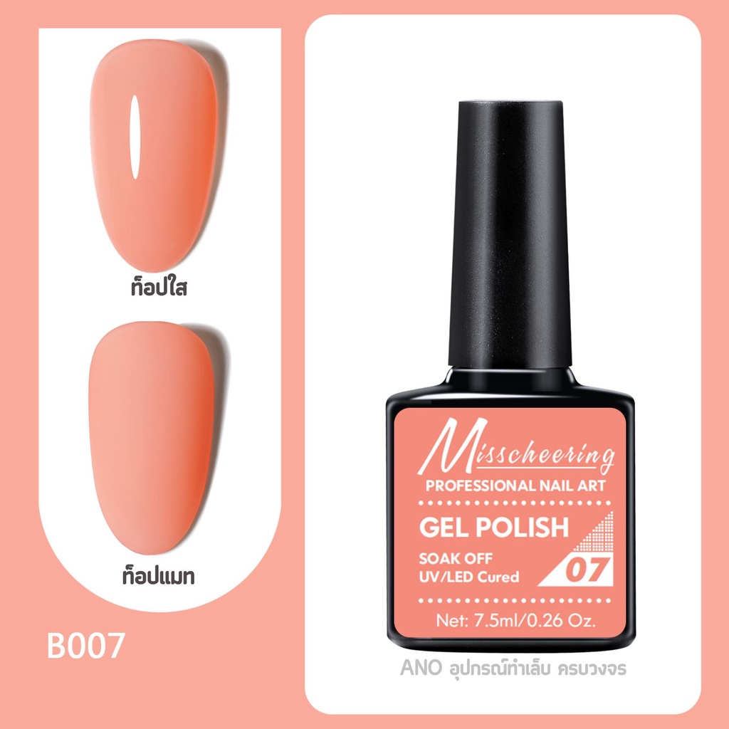 สีทาเล็บเจล Misscheering 7.5ml สีเจล UV/LED ต้องอบ ยาทาเล็บเจล ขวดบอกสี (1/2)