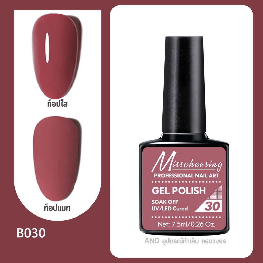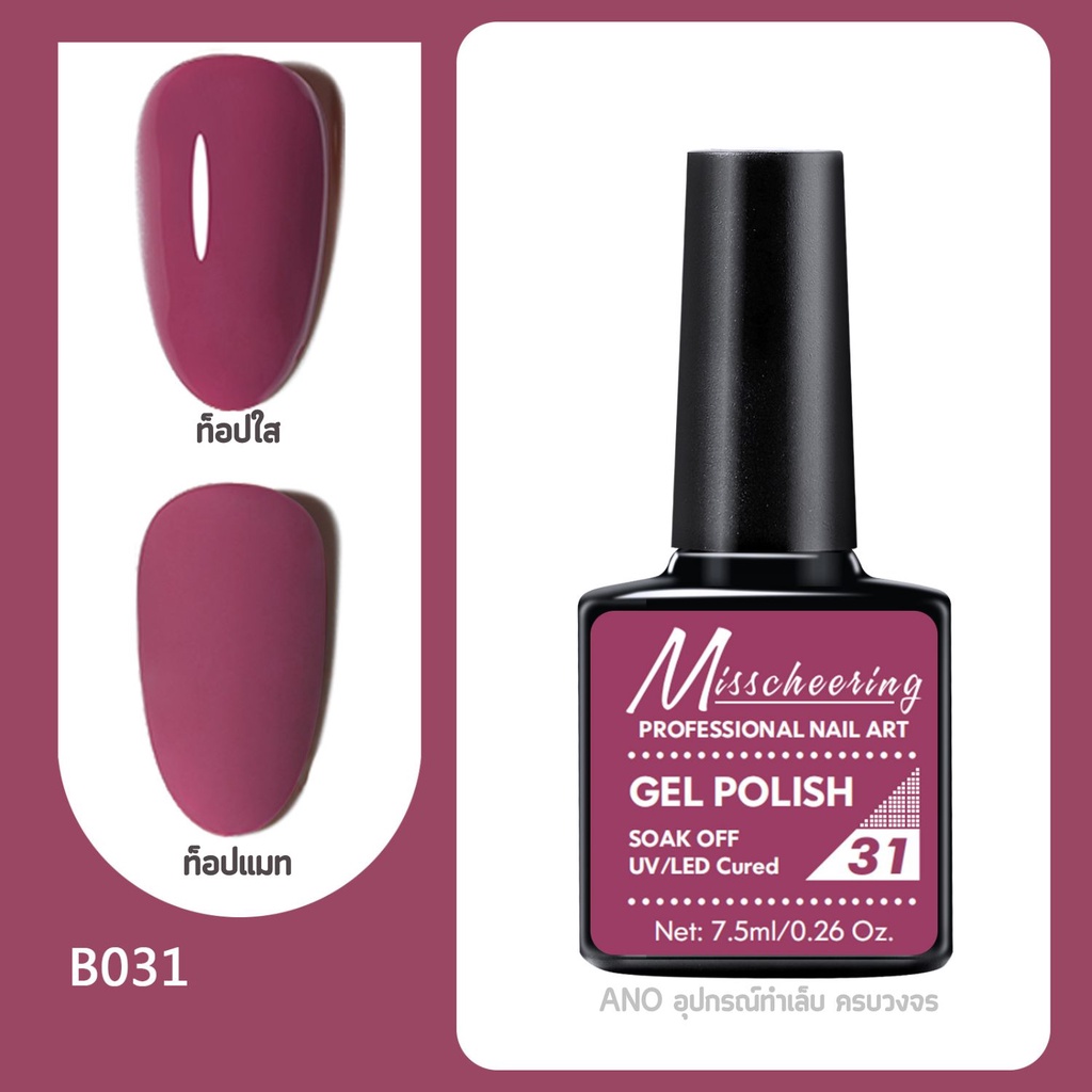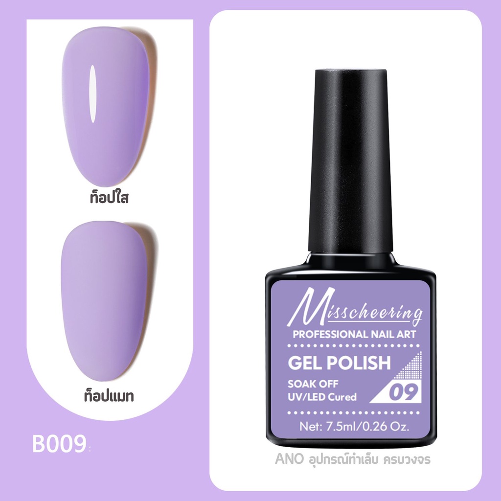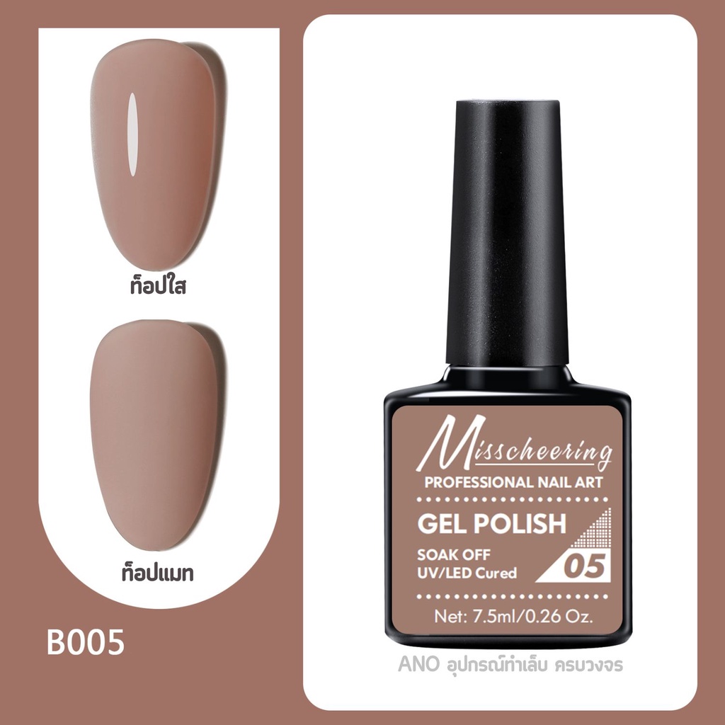 สีทาเล็บเจล Misscheering 7.5ml สีเจล UV/LED ต้องอบ ยาทาเล็บเจล ขวดบอกสี (1/2)